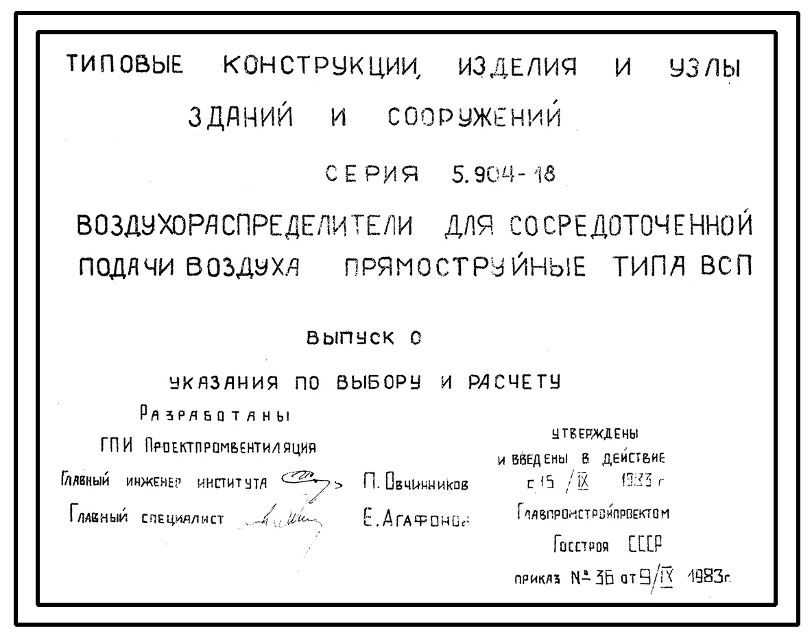 Серия 5.904-18 Воздухораспределители для сосредоточенной подачи воздуха прямоструйные типа ВСП. Рабочие чертежи.
