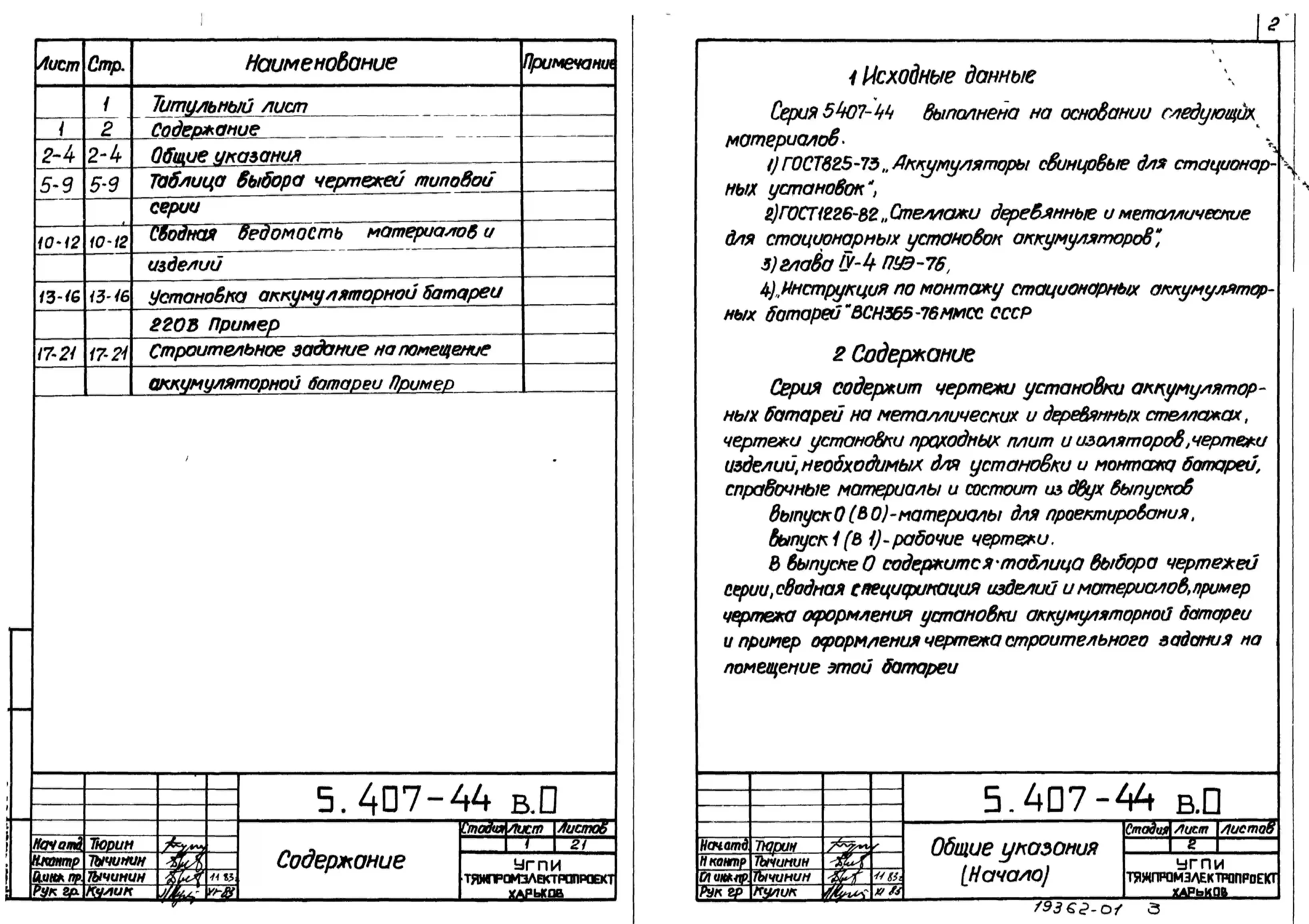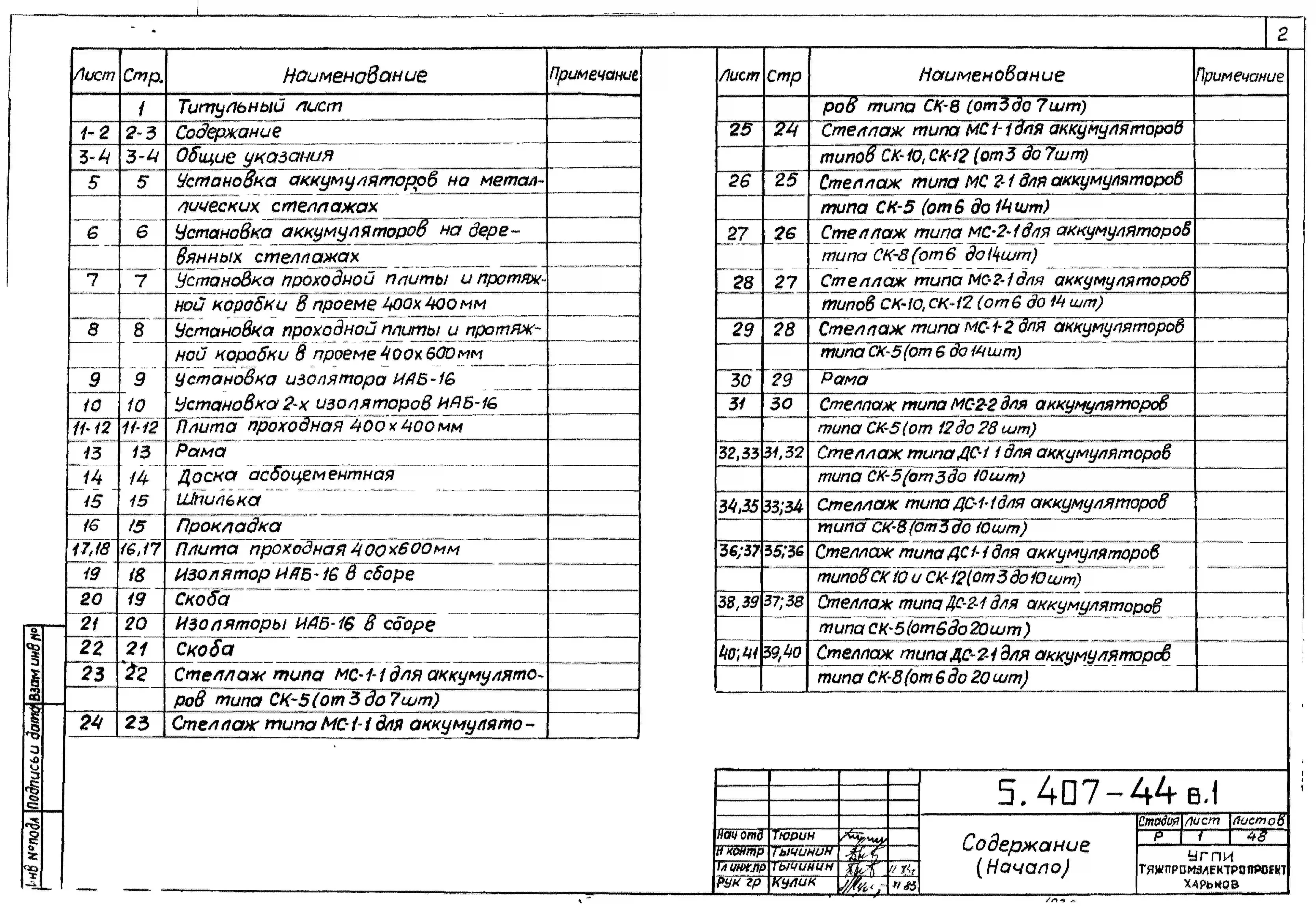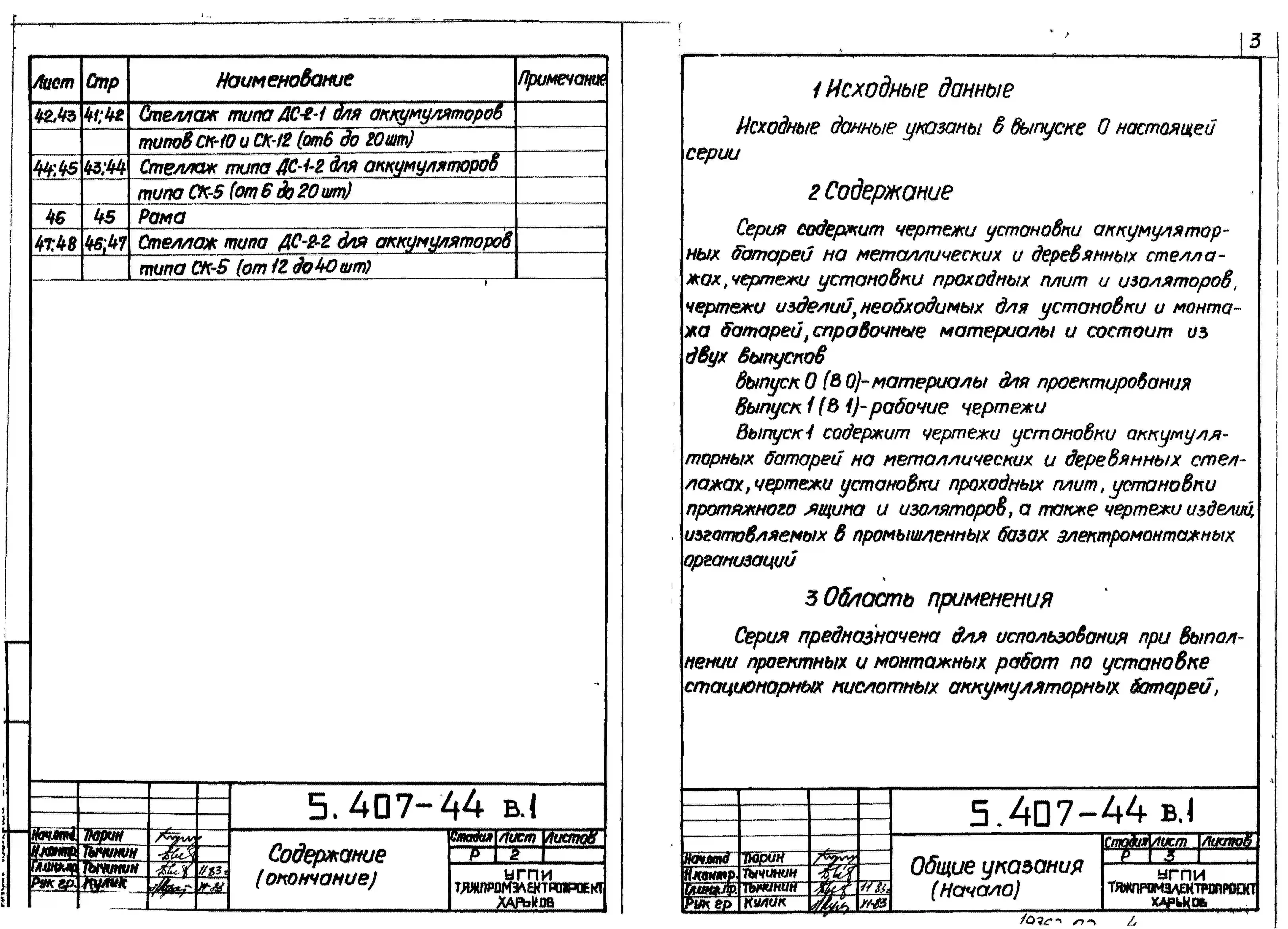 Серия 5.407-44 Установка кислотных аккумуляторных батарей подстанций промышленных предприятий. Рабочие чертежи.