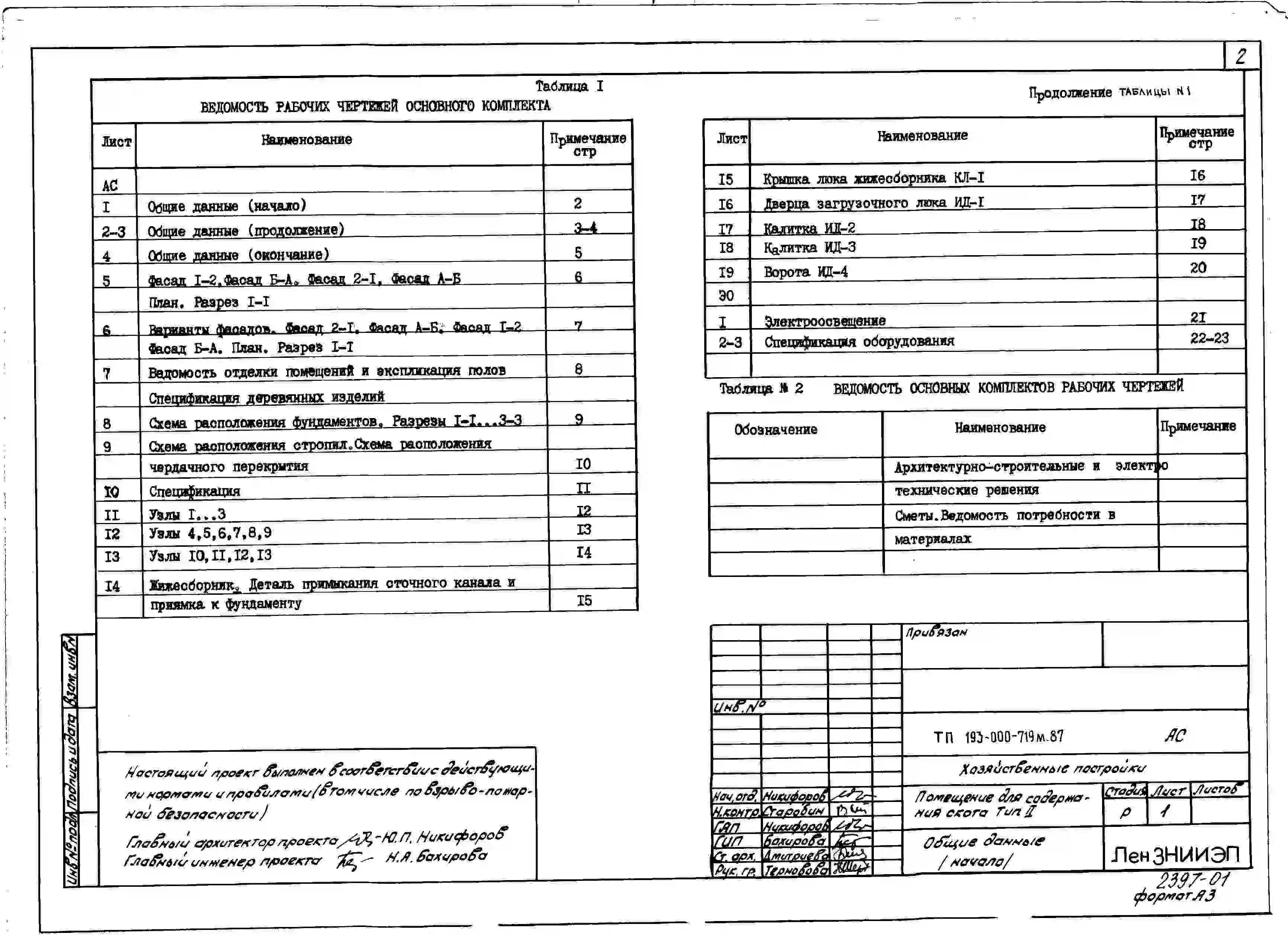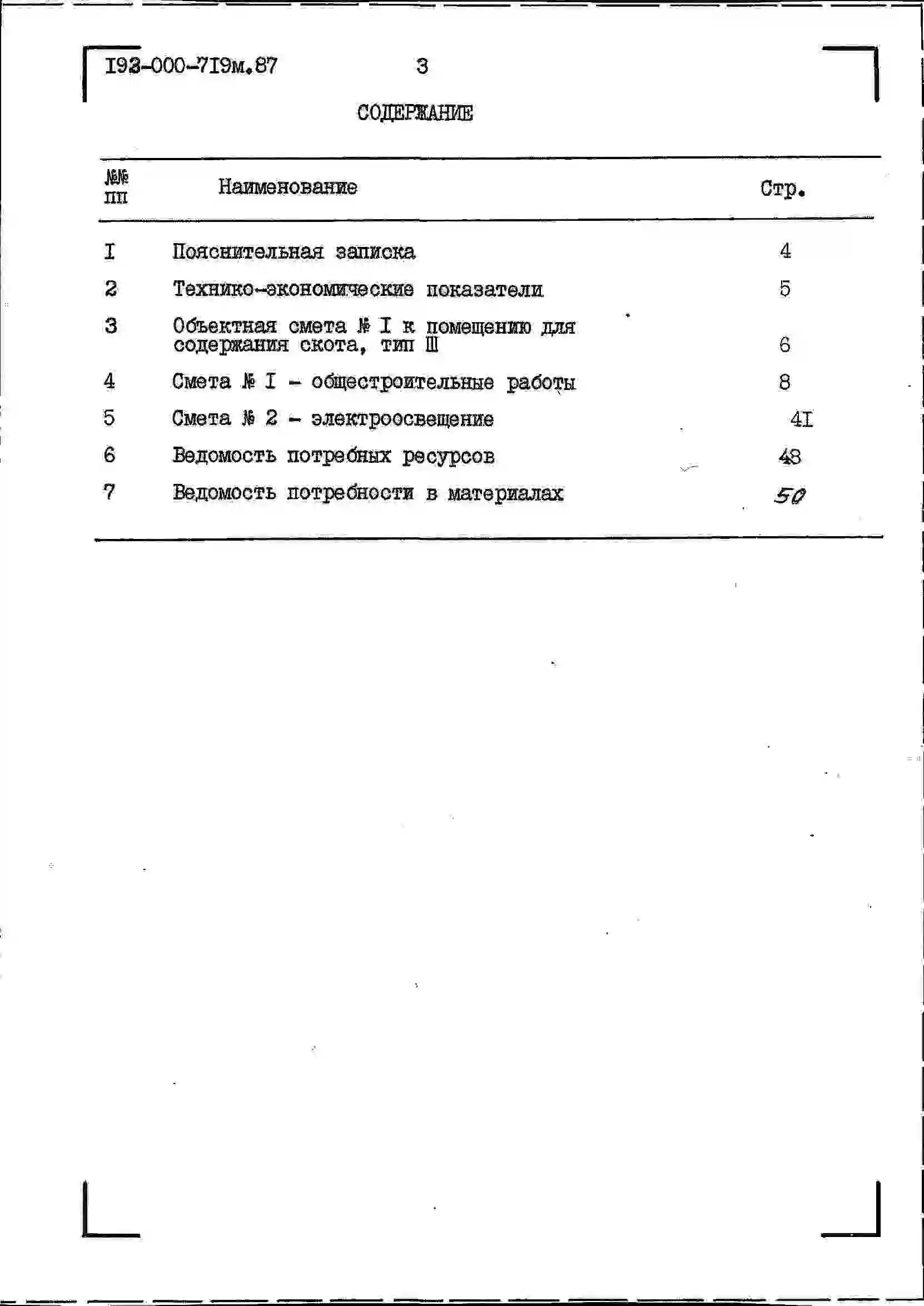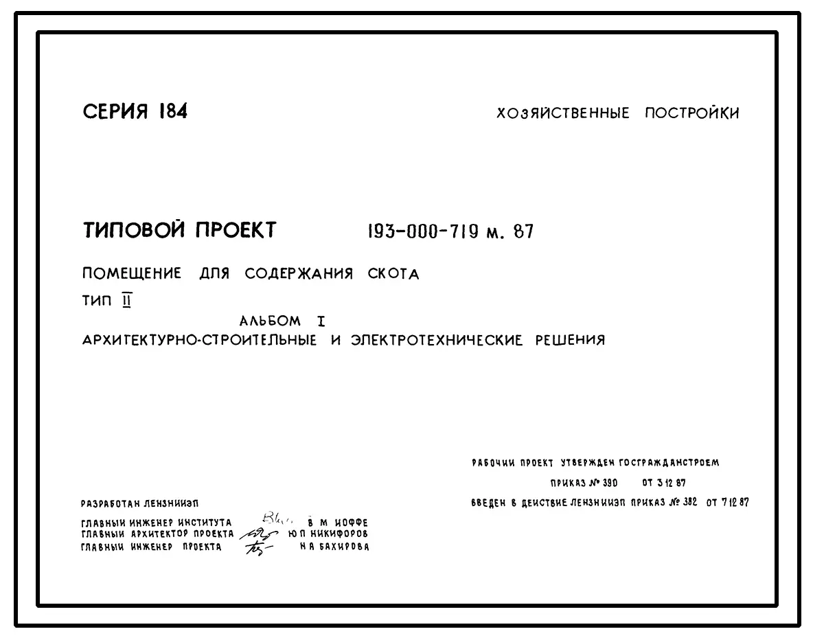 Типовой проект 193-000-719м.87 Хозяйственные постройки. Помещение для содержания скота.