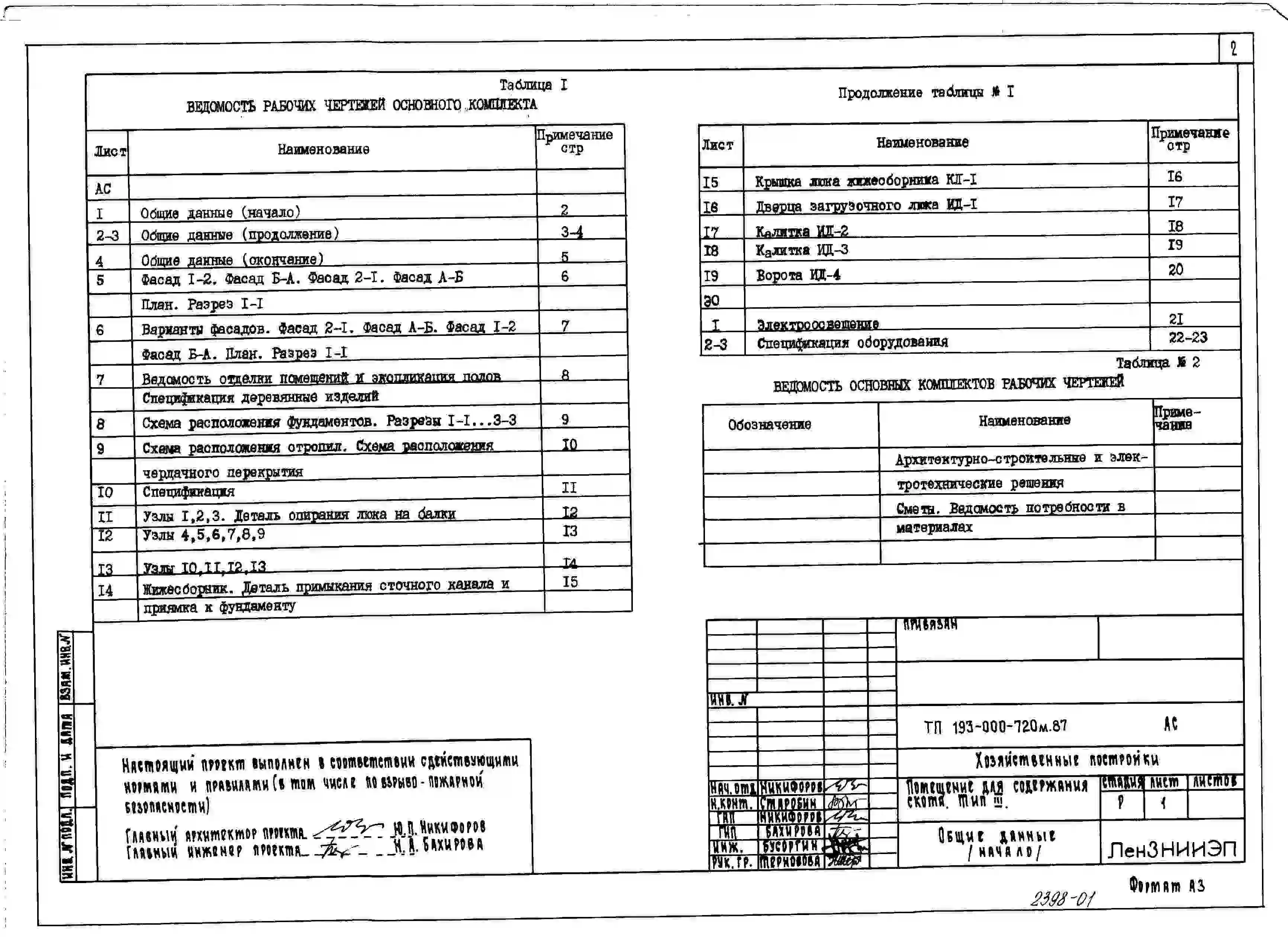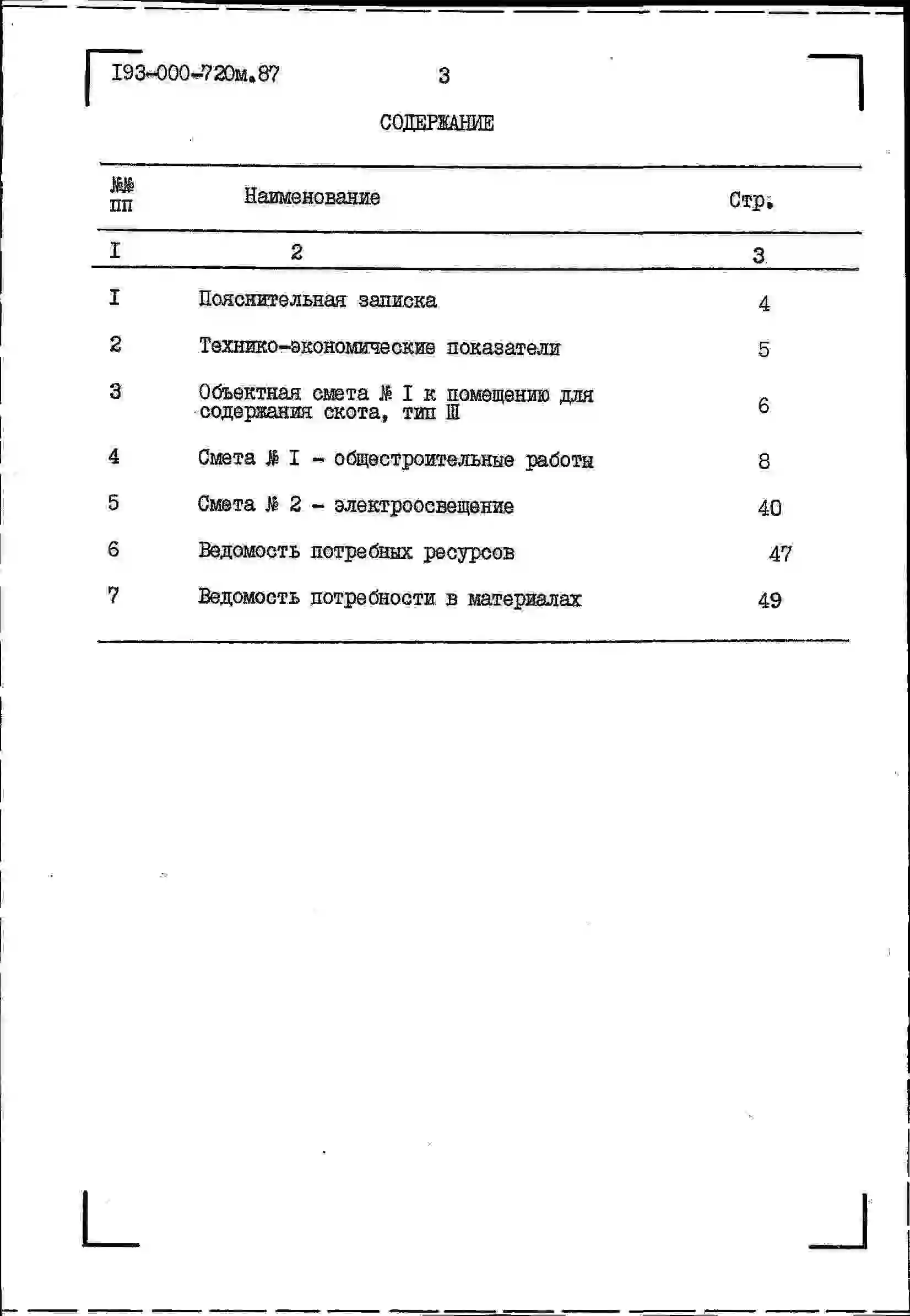 Типовой проект 193-000-720м.87 Хозяйственные постройки. Помещение для содержания скота.