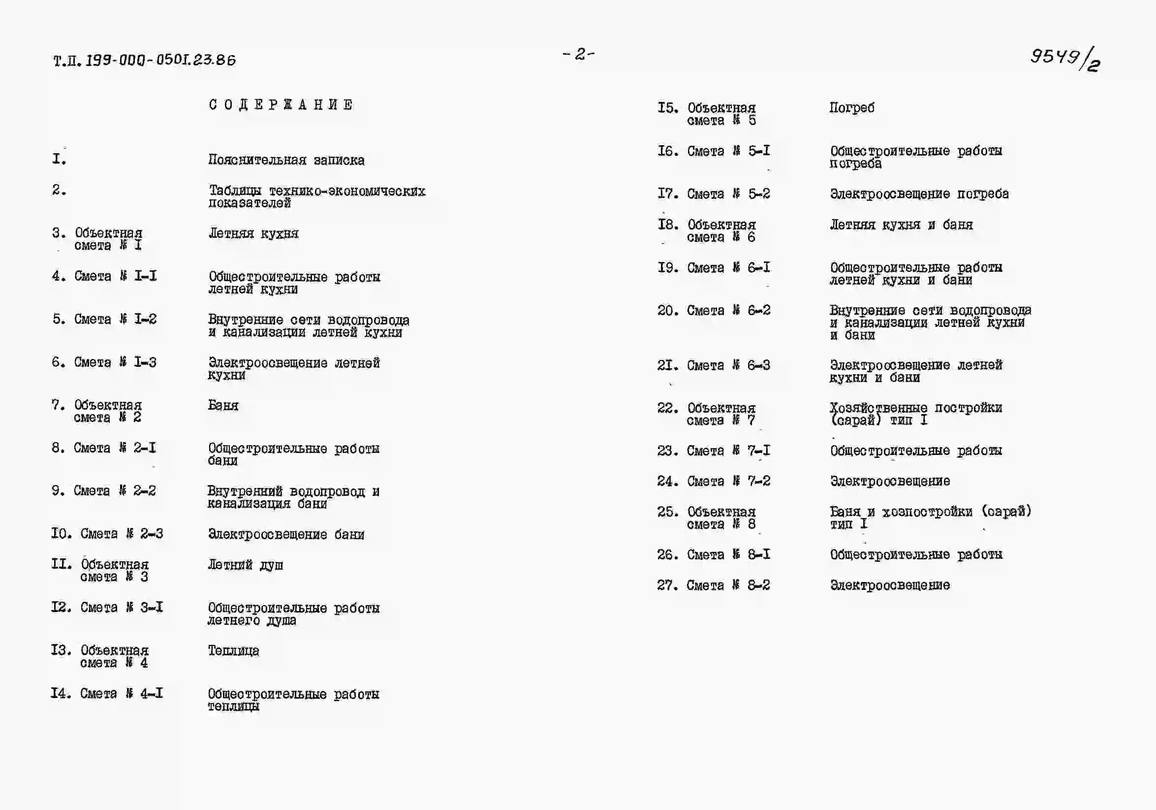 Типовой проект 199-000-0501.23.86 Хозяйственные и бытовые постройки, возводимые за счет средств населения (летняя кухня, баня, теплица, летний душ)