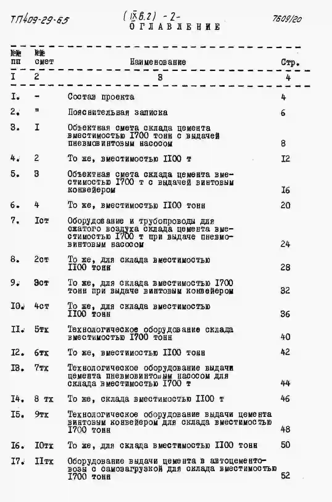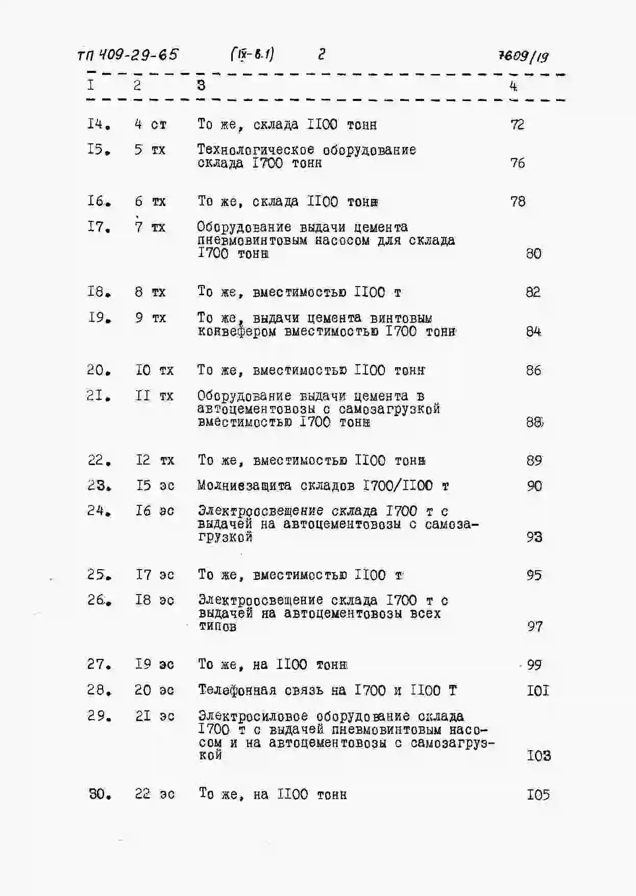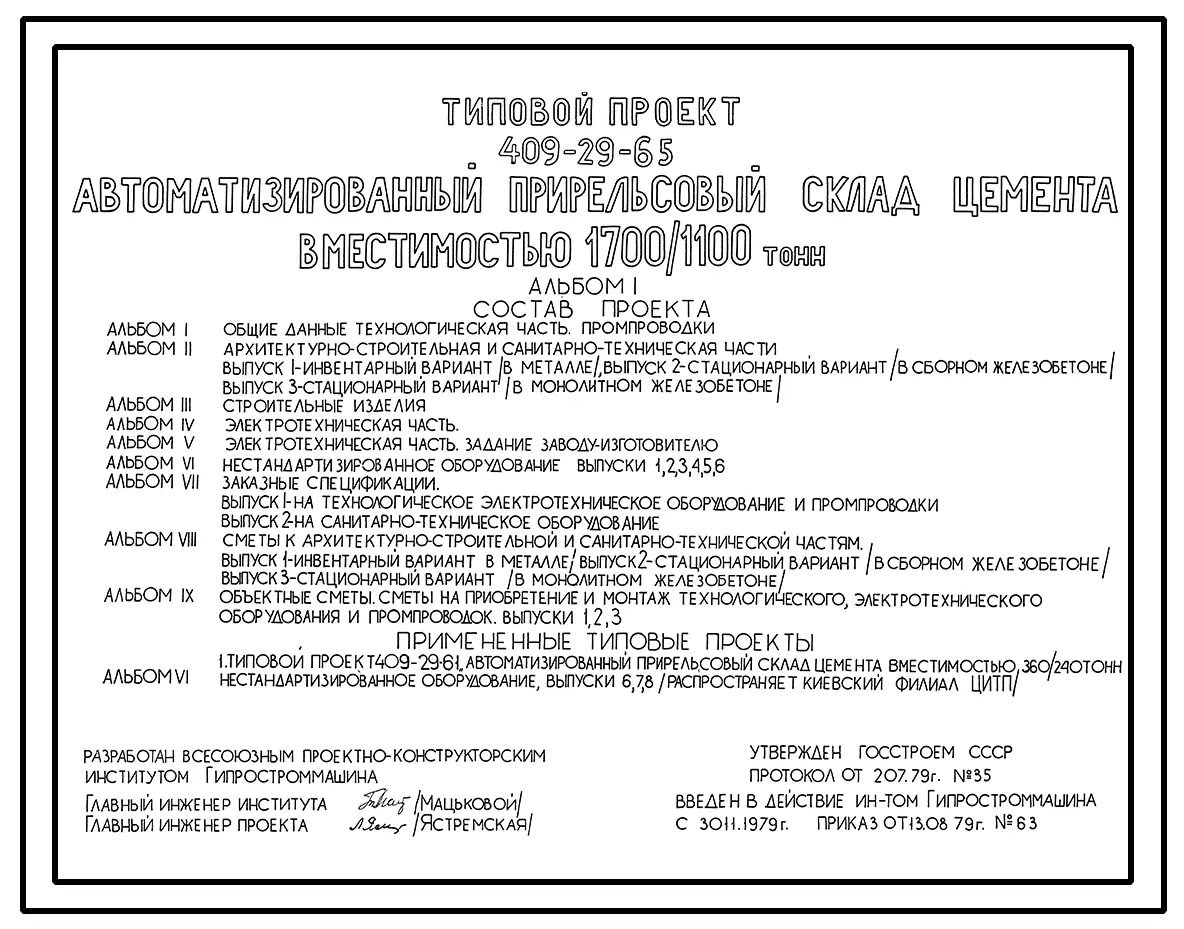 Типовой проект 409-29-65 Автоматизированный прирельсовый склад цемента вместимостью 1700/1100т