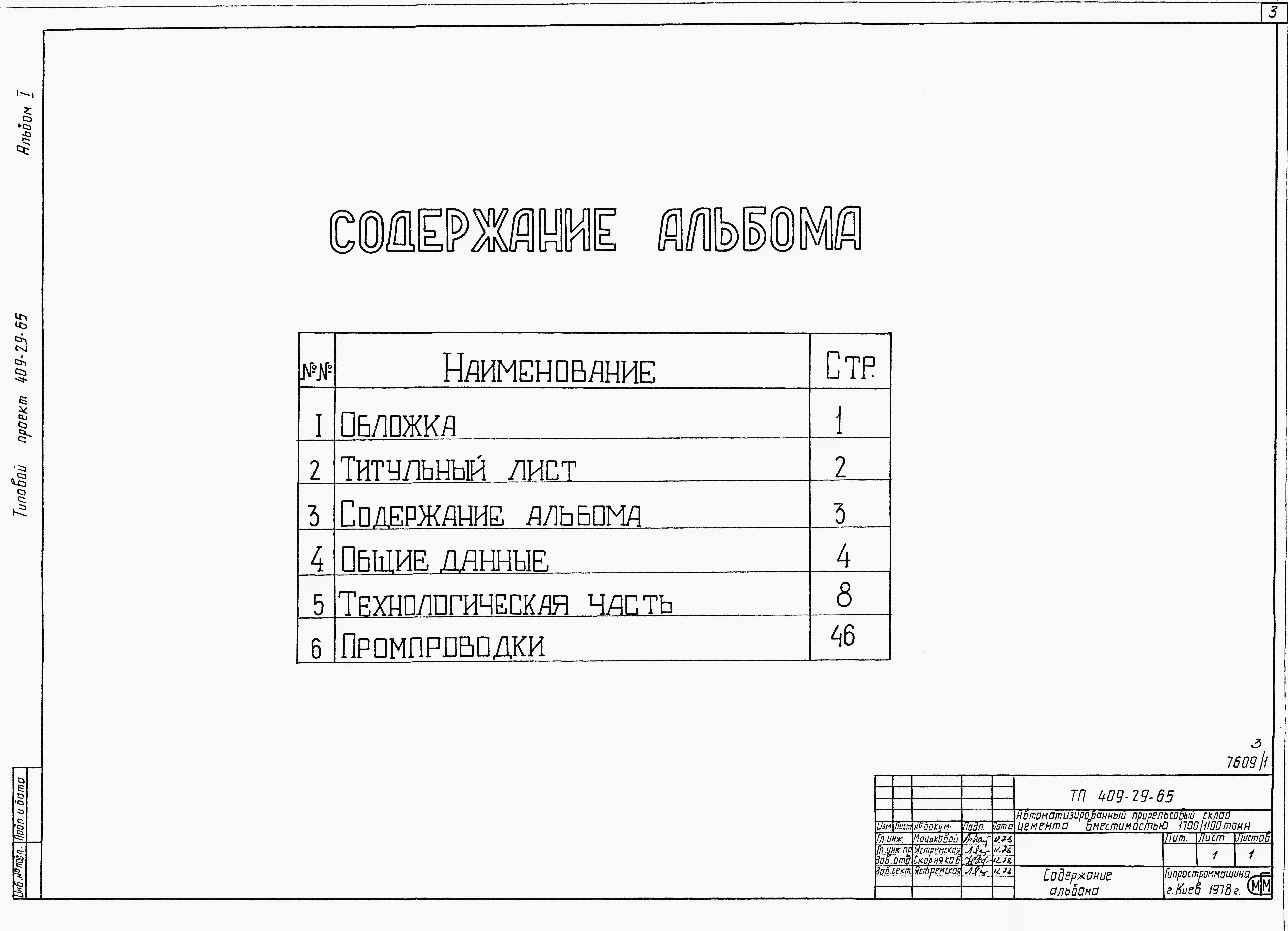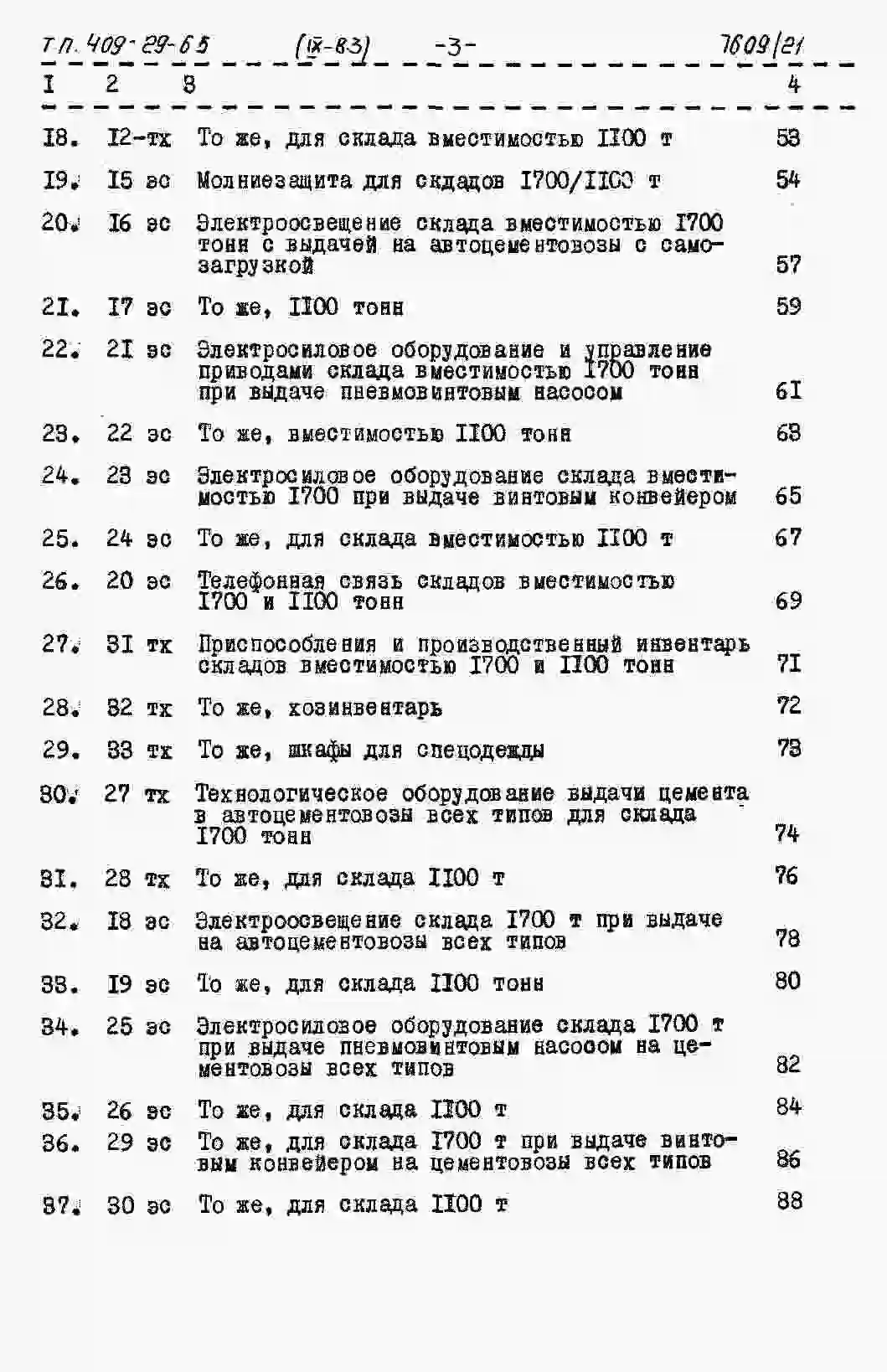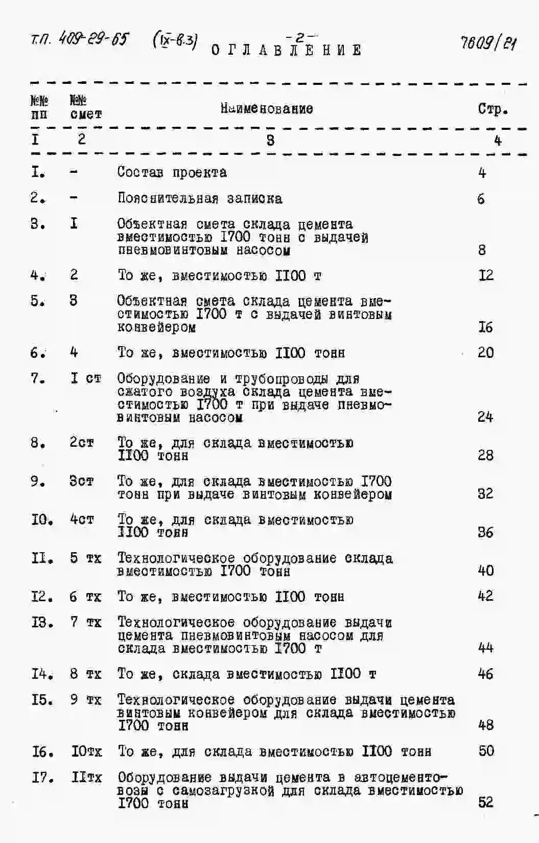 Типовой проект 409-29-65 Автоматизированный прирельсовый склад цемента вместимостью 1700/1100т