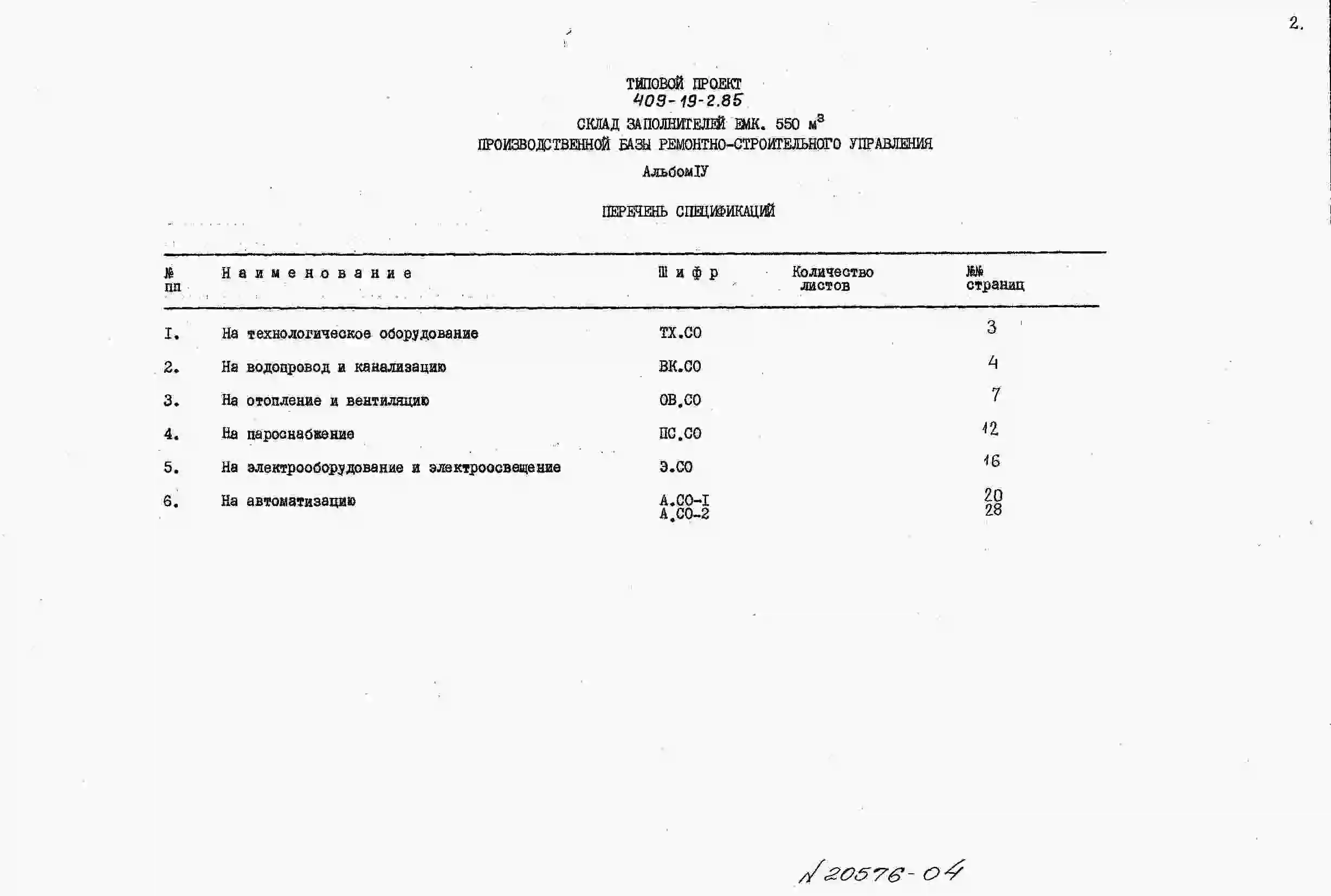 Типовой проект 409-19-2.85 Склад заполнителей емк. 550 м3 производственной базы ремонтно-строительного управления