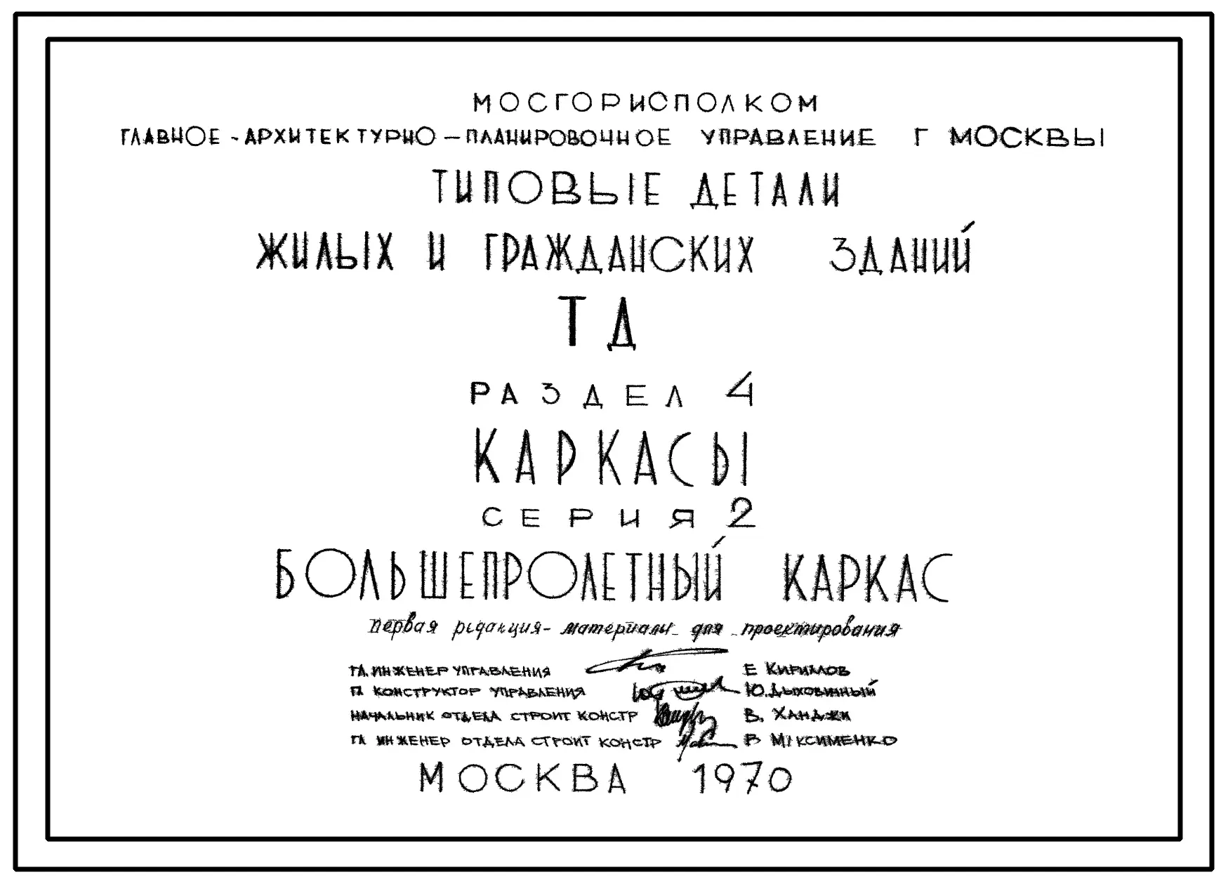 Шифр 65-765/1 Серия 2 Раздел 4 Большепролетный каркас. Каркасы. Материалы для проектирования.