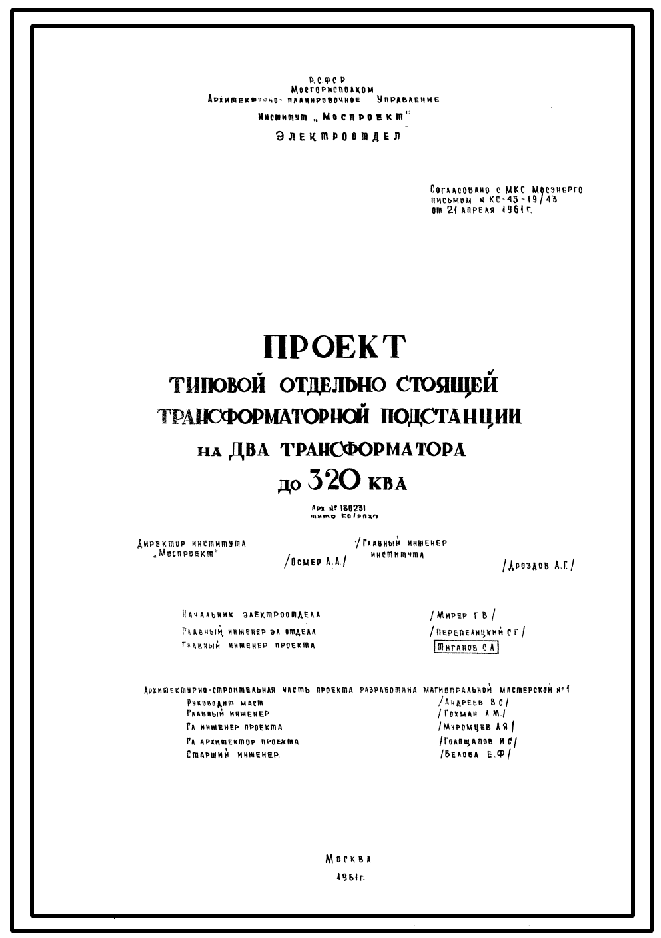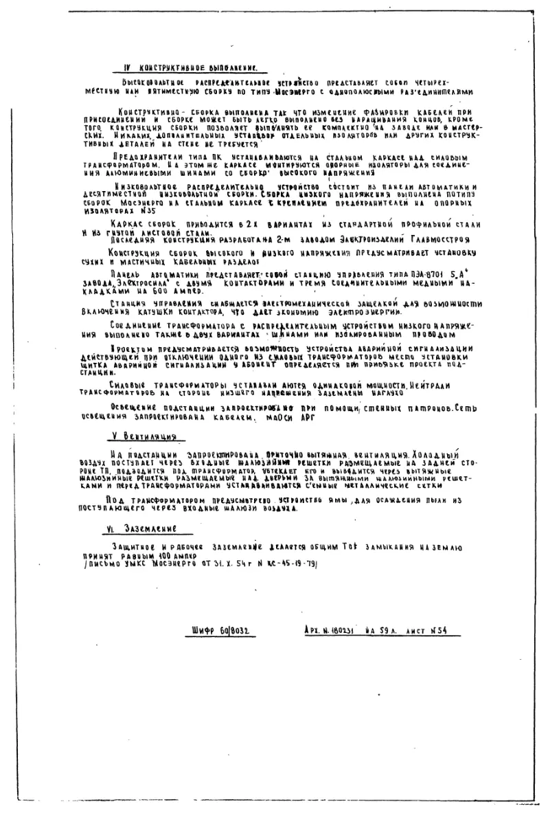 Шифр 60/8032 Отдельно стоящая трансформаторная подстанция на два трансформатора до 320 кВа. И-60