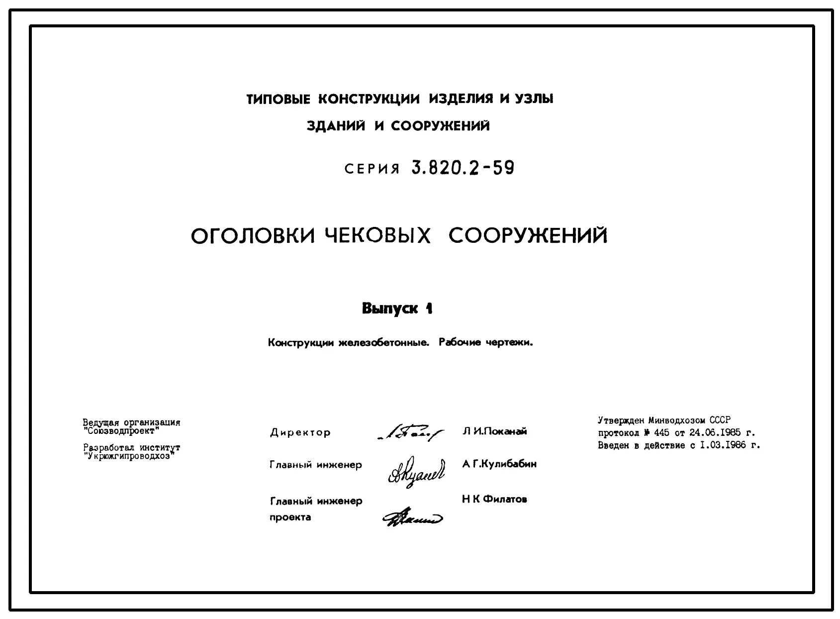 Серия 3.820.2-59 Оголовки чековых сооружений. Рабочие чертежи.