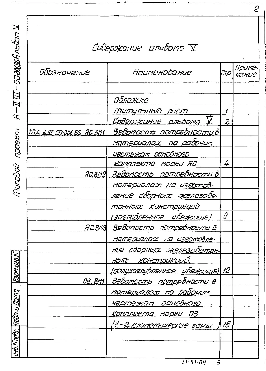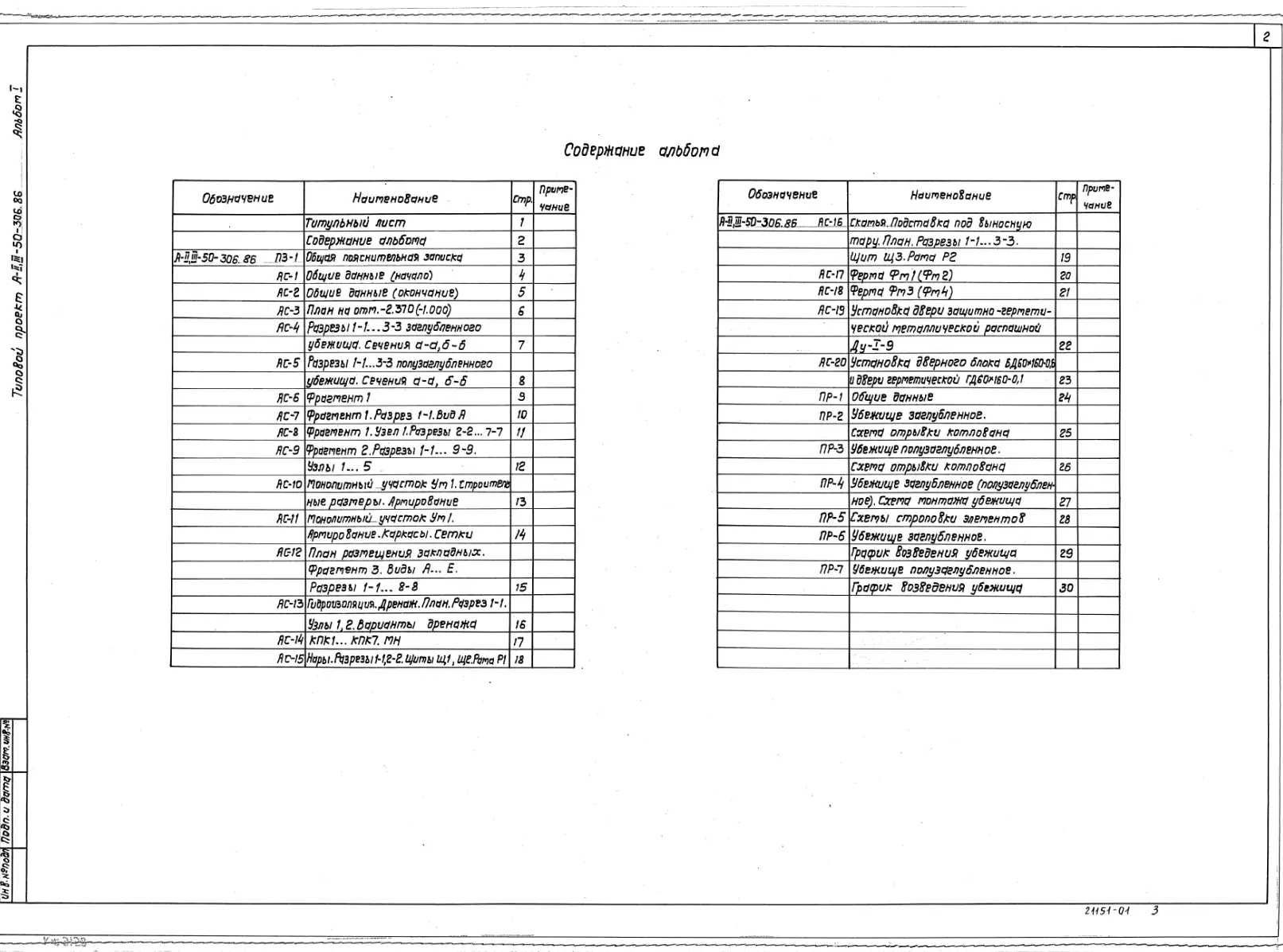 Типовой проект А-II,III-50-306.86 Убежища из быстромонтируемых железобетонных элементов для строительства в мирное время. Стены из железобетонных элементов (убежище на 50 человек, размеры убежища 27,82м на 2,2м, режимы вентиляции 1,2)