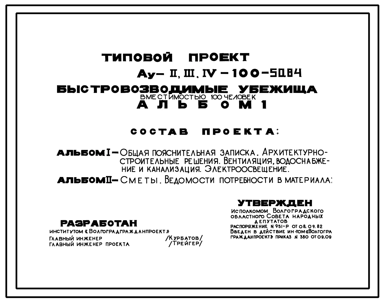 Типовой проект Ау-II,III,IV-100-50.84 Быстровозводимые убежища на 100 чел. Стены из железобетонных панелей индивидуального изготовления (убежище на 100 человек, размеры убежища 18м на 4,2м, режимы вентиляции 1,2)