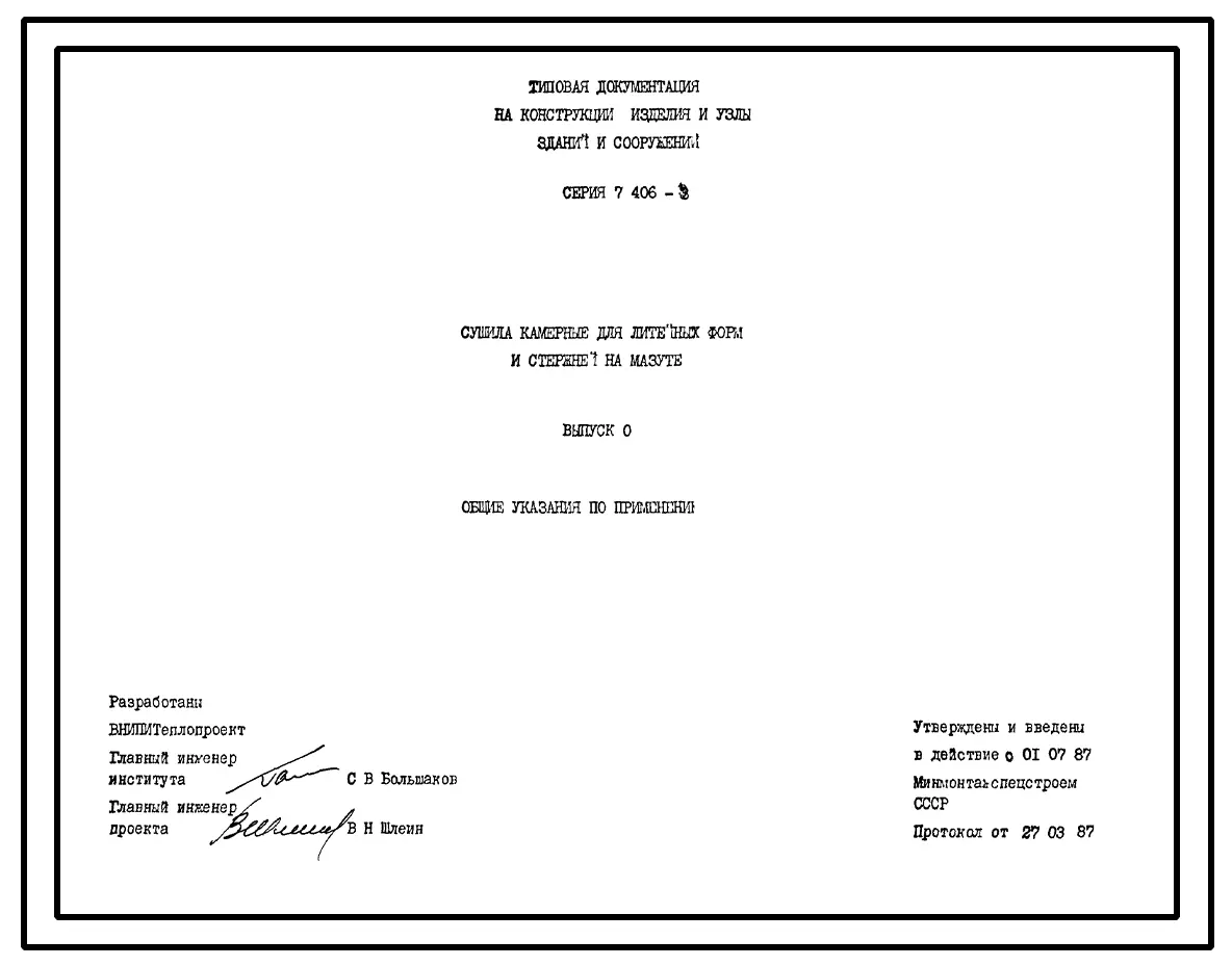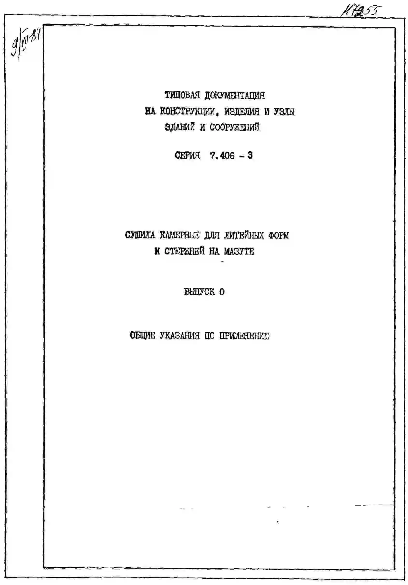 Серия 7.406-3 Сушила камерные для литейных форм и стержней на мазуте. Рабочие чертежи.