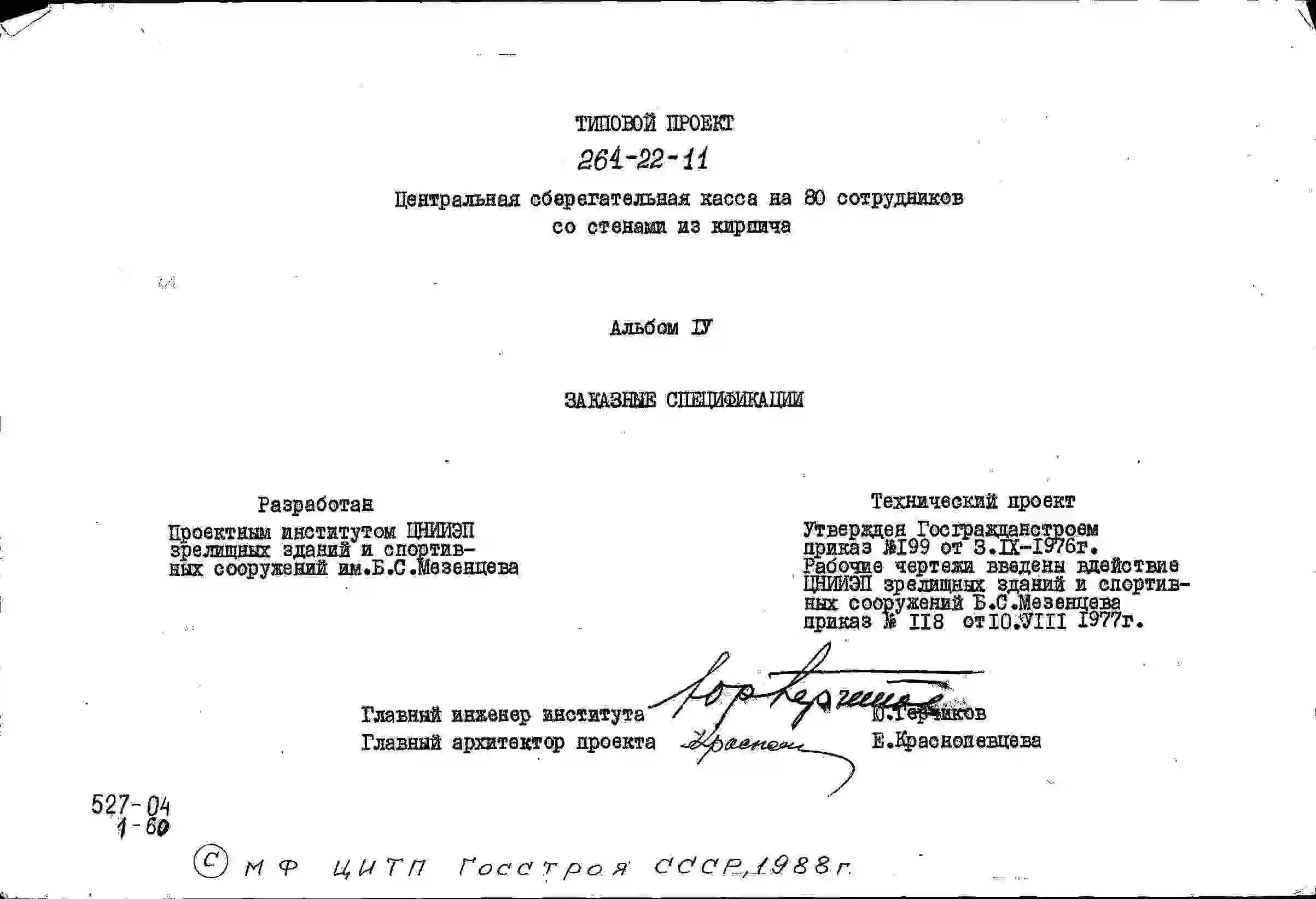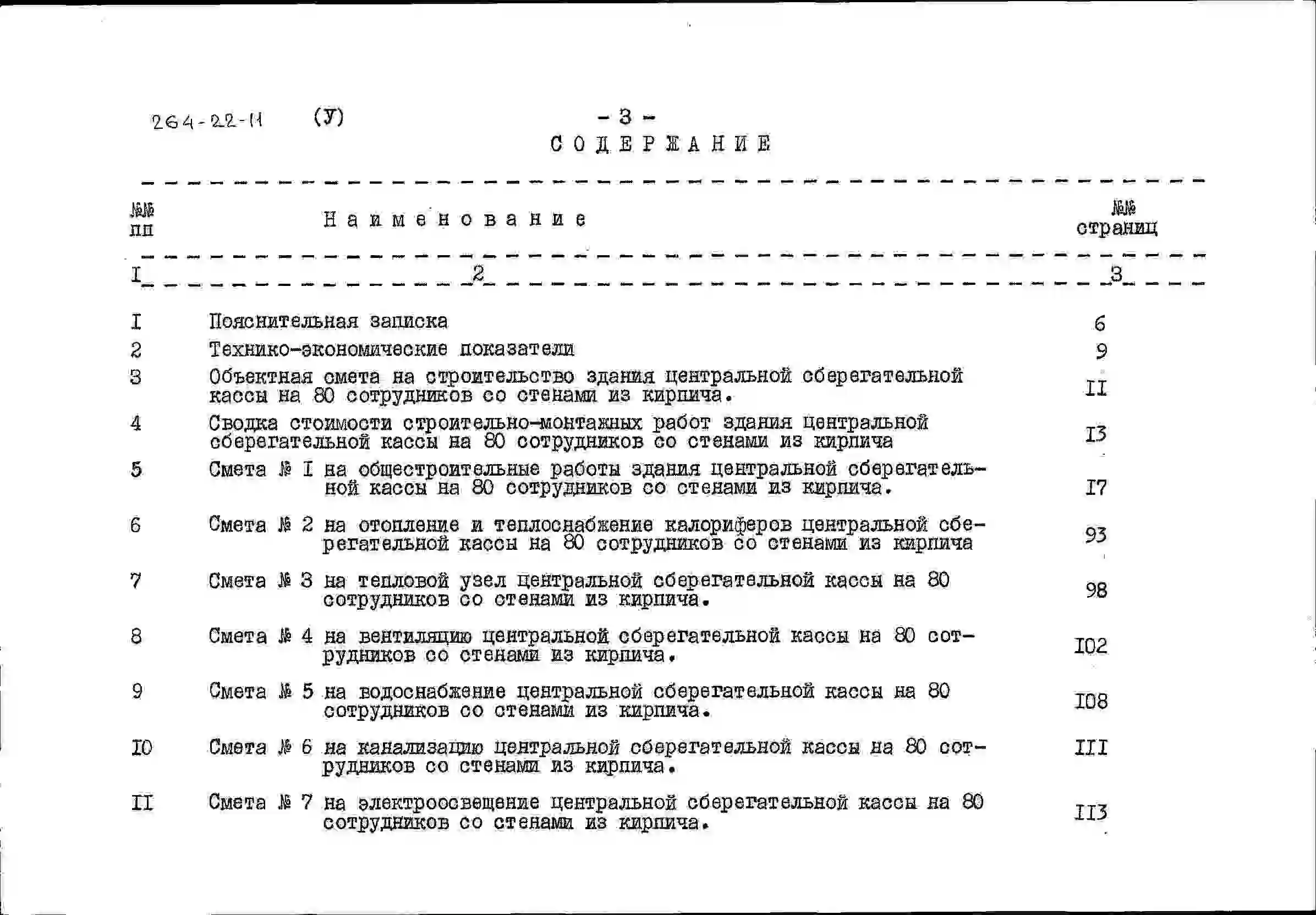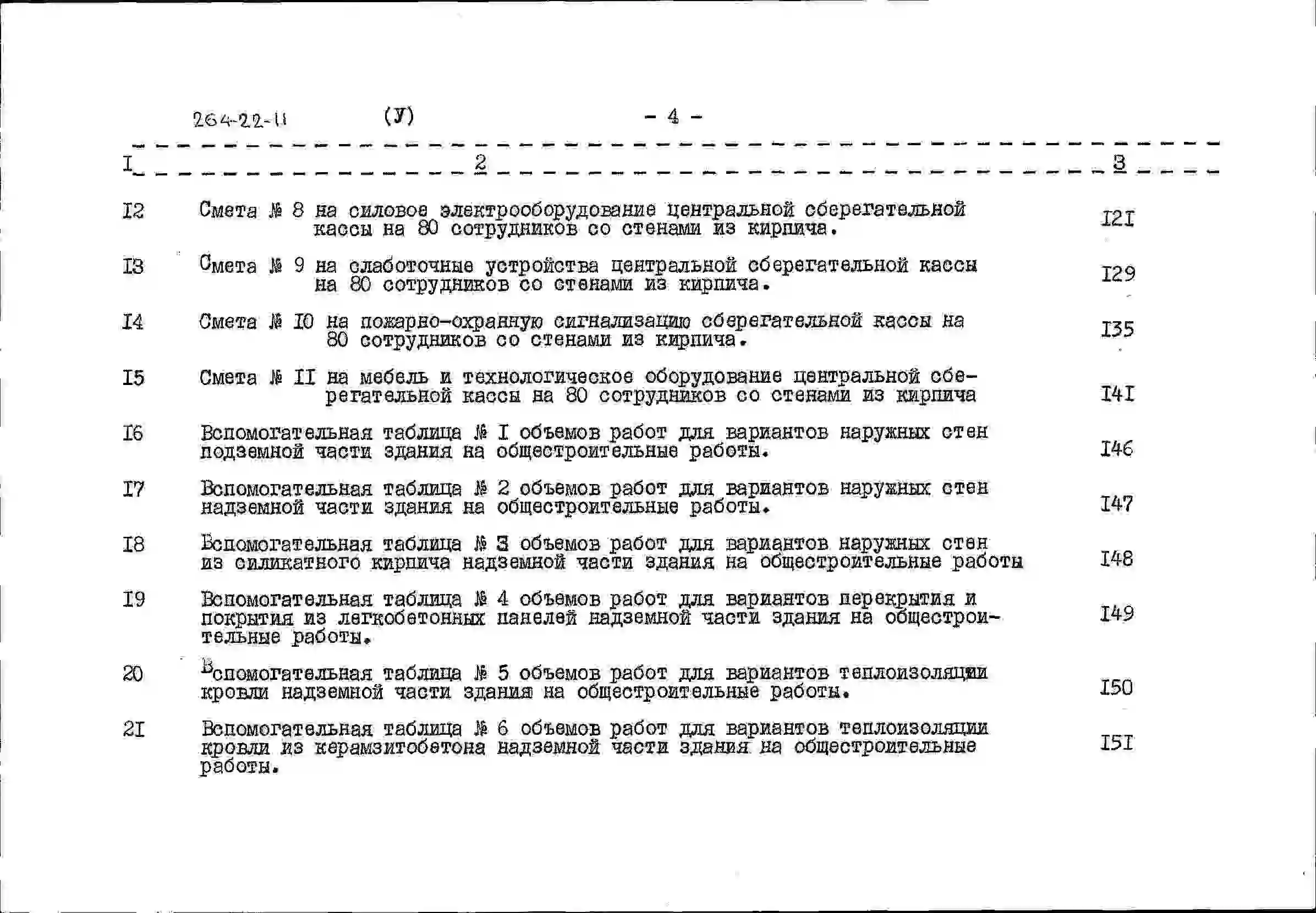 Типовой проект 264-22-11 Центральная сберегательная касса на 80 сотрудников со стенами из кирпича. Для строительства в IВ климатическом подрайоне, II и III климатических районах.