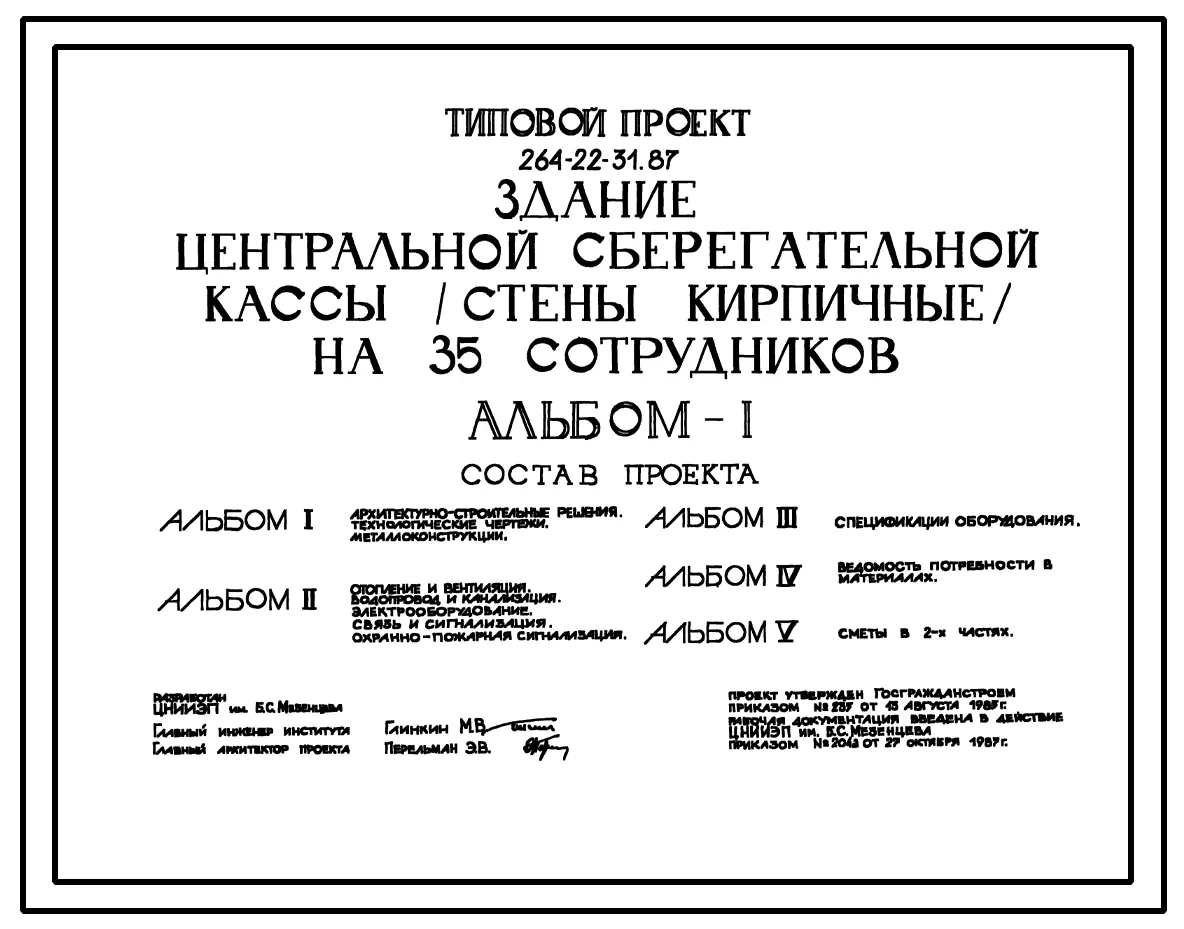 Типовой проект 264-22-31.87 Здание центральной сберегательной кассы на 35 сотрудников