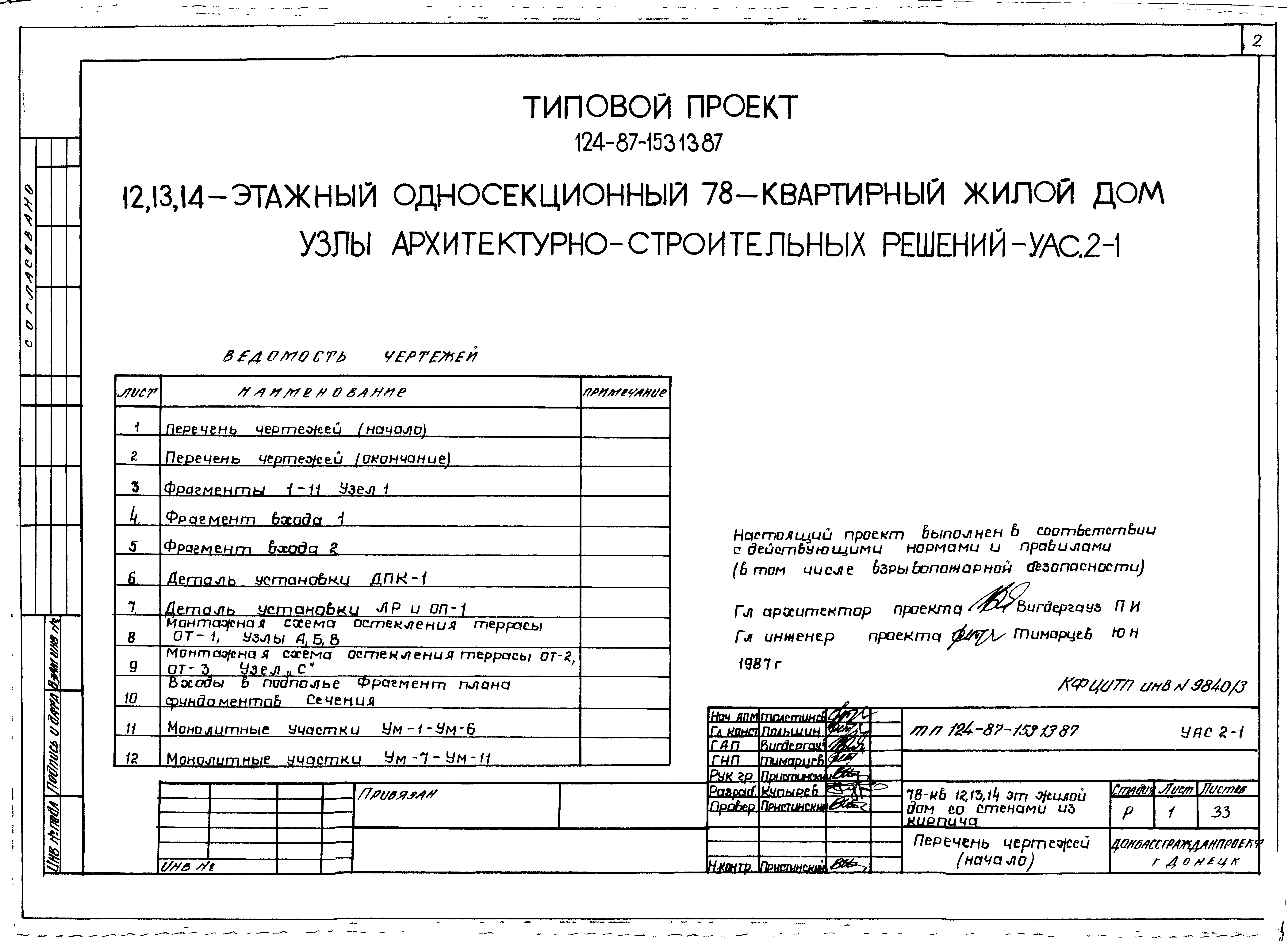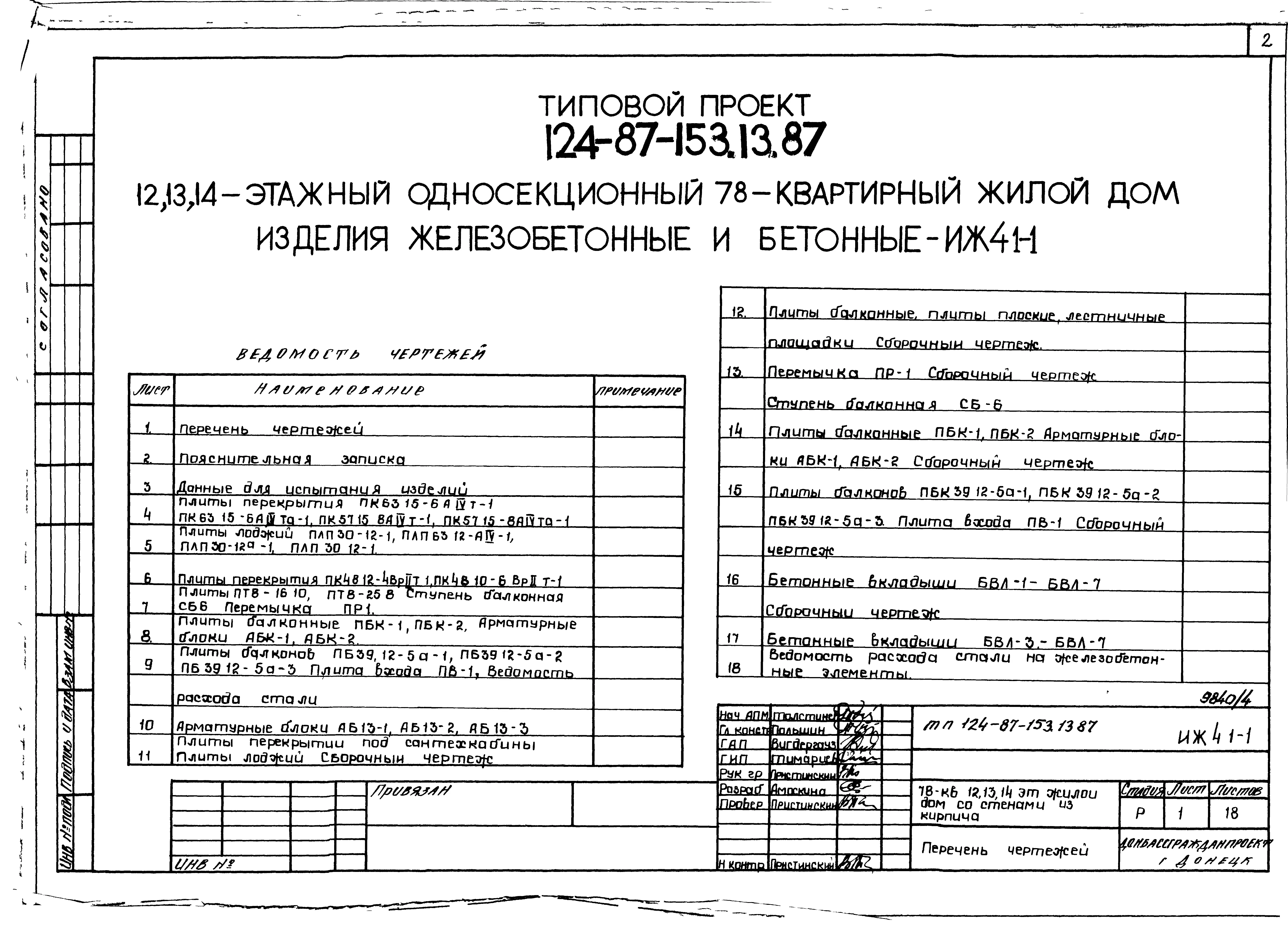Типовой проект 124-87-153.13.87 78-квартирный 12, 13, 14-этажный жилой дом со стенами из кирпича /для строительства в УССР/