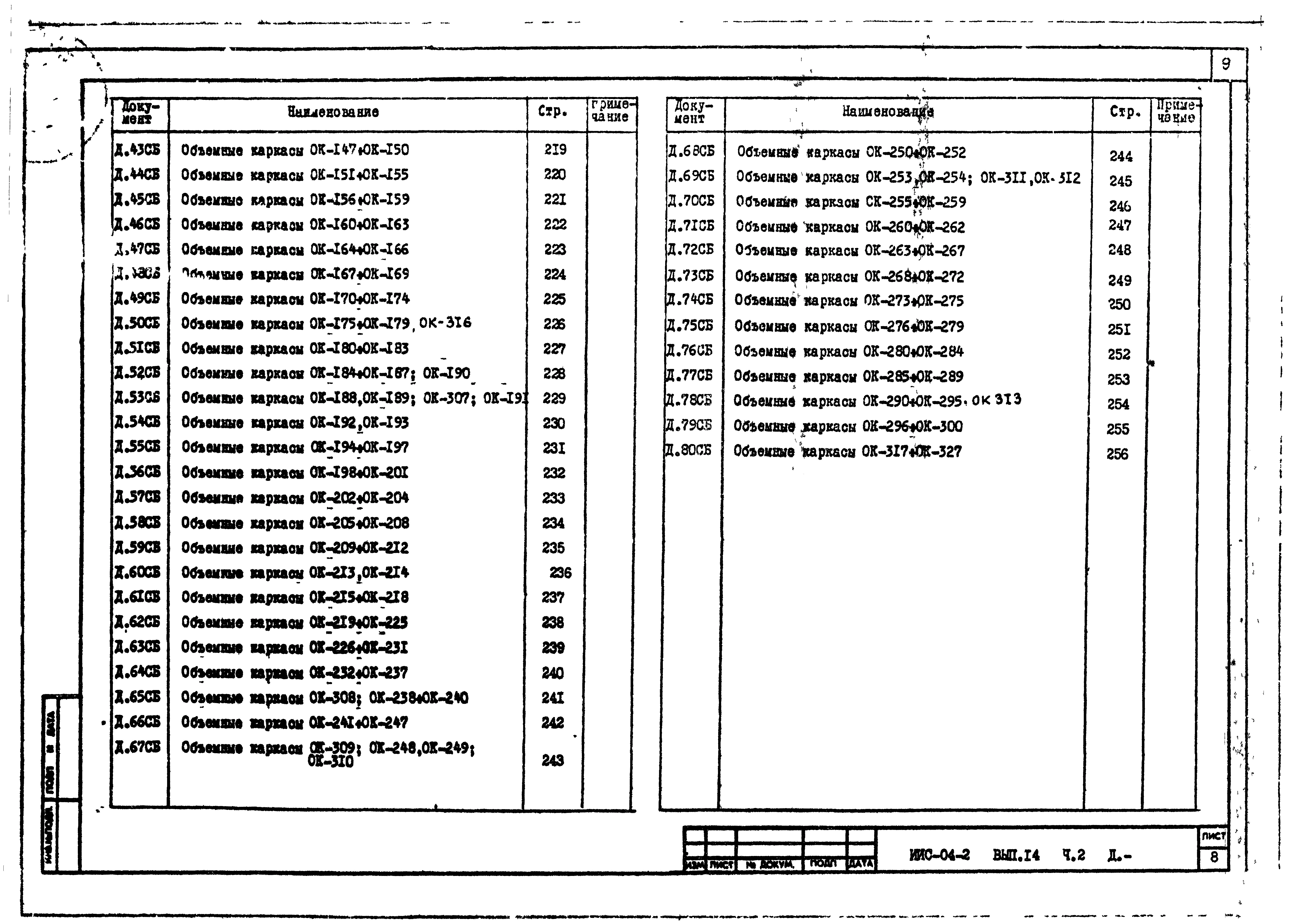 Серия ИИС-04-2 Сборные элементы зданий каркасной конструкции для строительства гражданских зданий и зданий административно-бытового назначения промышленных предприятий в районах с сейсмичностью 6, 7, 8 и 9 баллов. Рабочие чертежи.