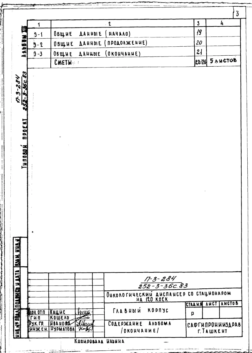 Типовой проект П-3-284(252-3-36с.83) Хозяйственно-бытовые помещения, в подвале главного корпуса онкологического диспансера со стационаром на 120 коек (в конструкциях ИИС-04), (убежище на 284 человек, размеры убежища 48м на 36м, режимы вентиляции 1,2).