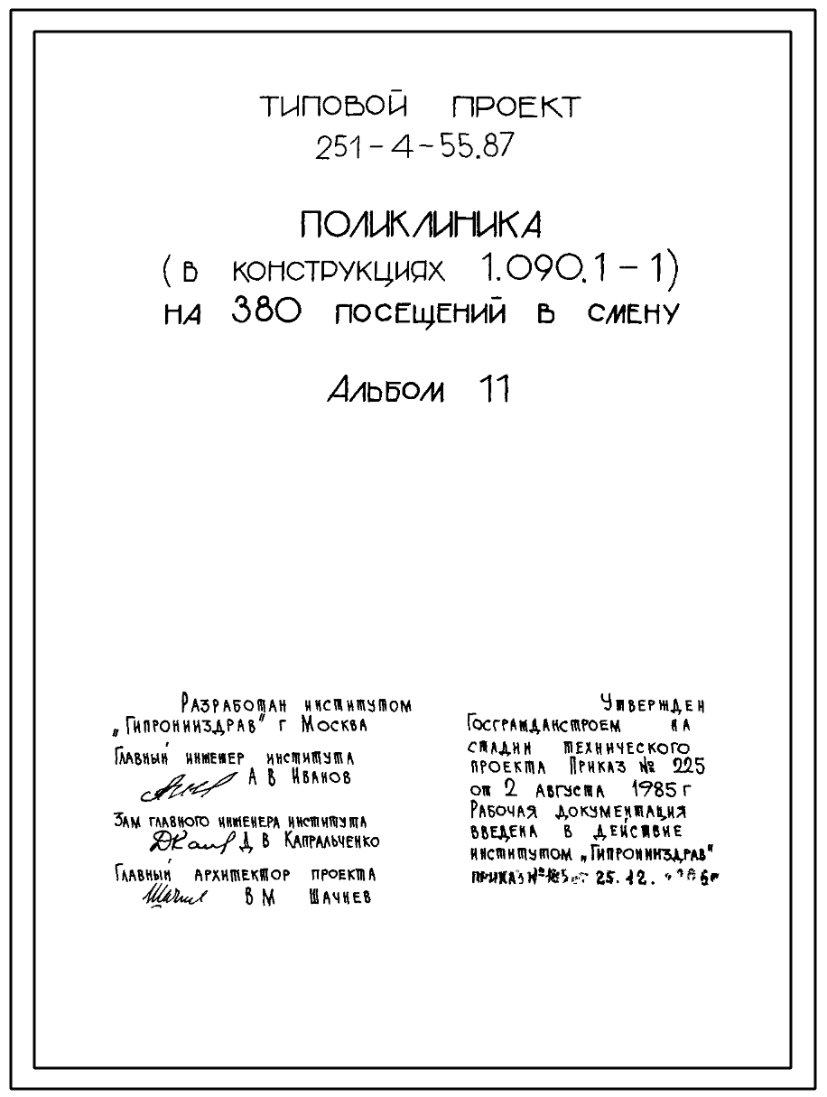 Типовой проект П-3-115(251-4-55.87) Хозяйственно-бытовые помещения в подвале поликлиники на 380 посещений в смену, (убежище на 115 человек, размеры убежища 18м на 15м, режимы вентиляции 1,2).