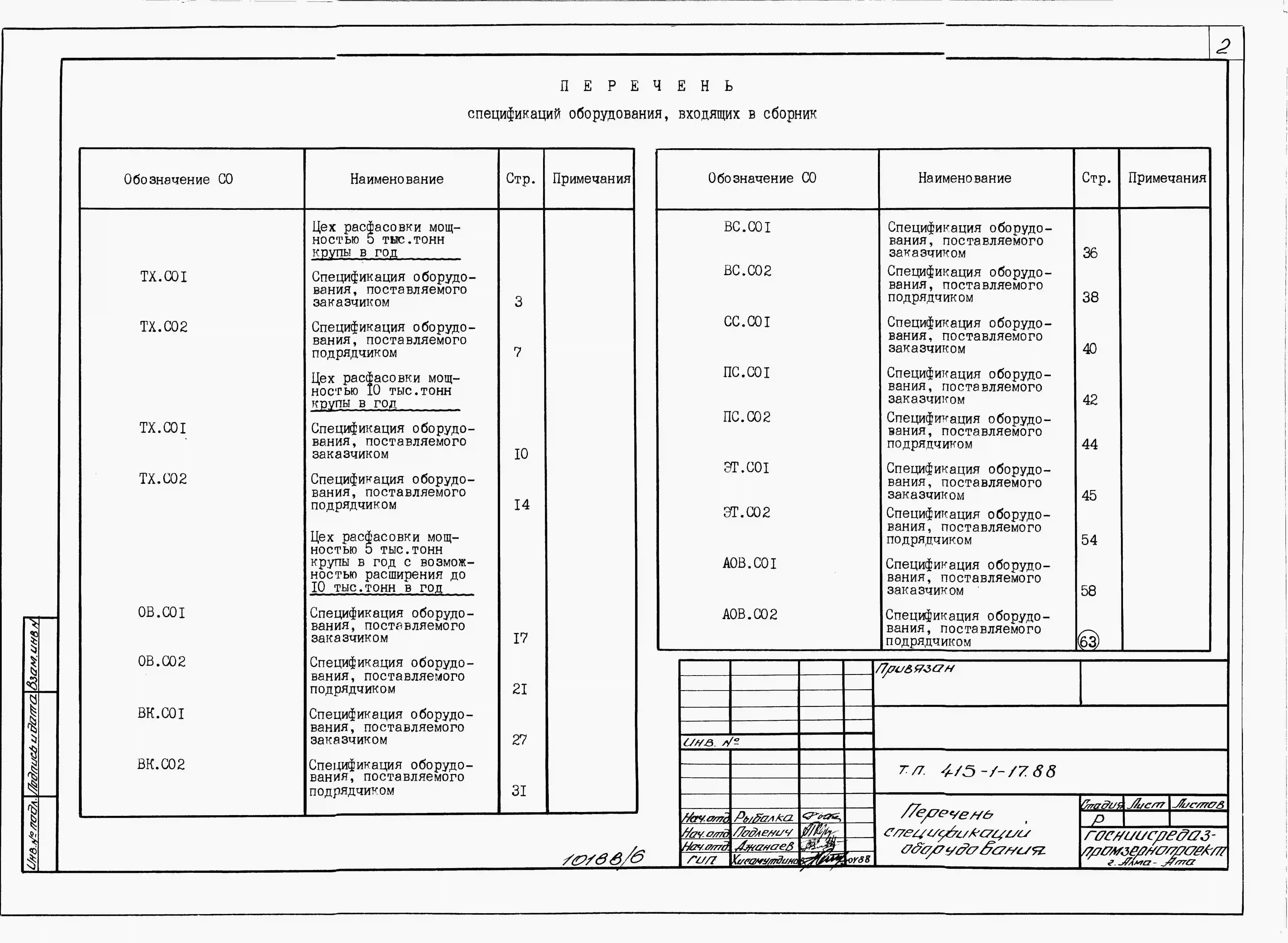 Типовой проект 415-1-17.88 Цех расфасовки для реаблаз и хлебоприемных предприятий мощностью 5 тыс.т крупы в год с возможностью расширения до 10 тыс.т в год