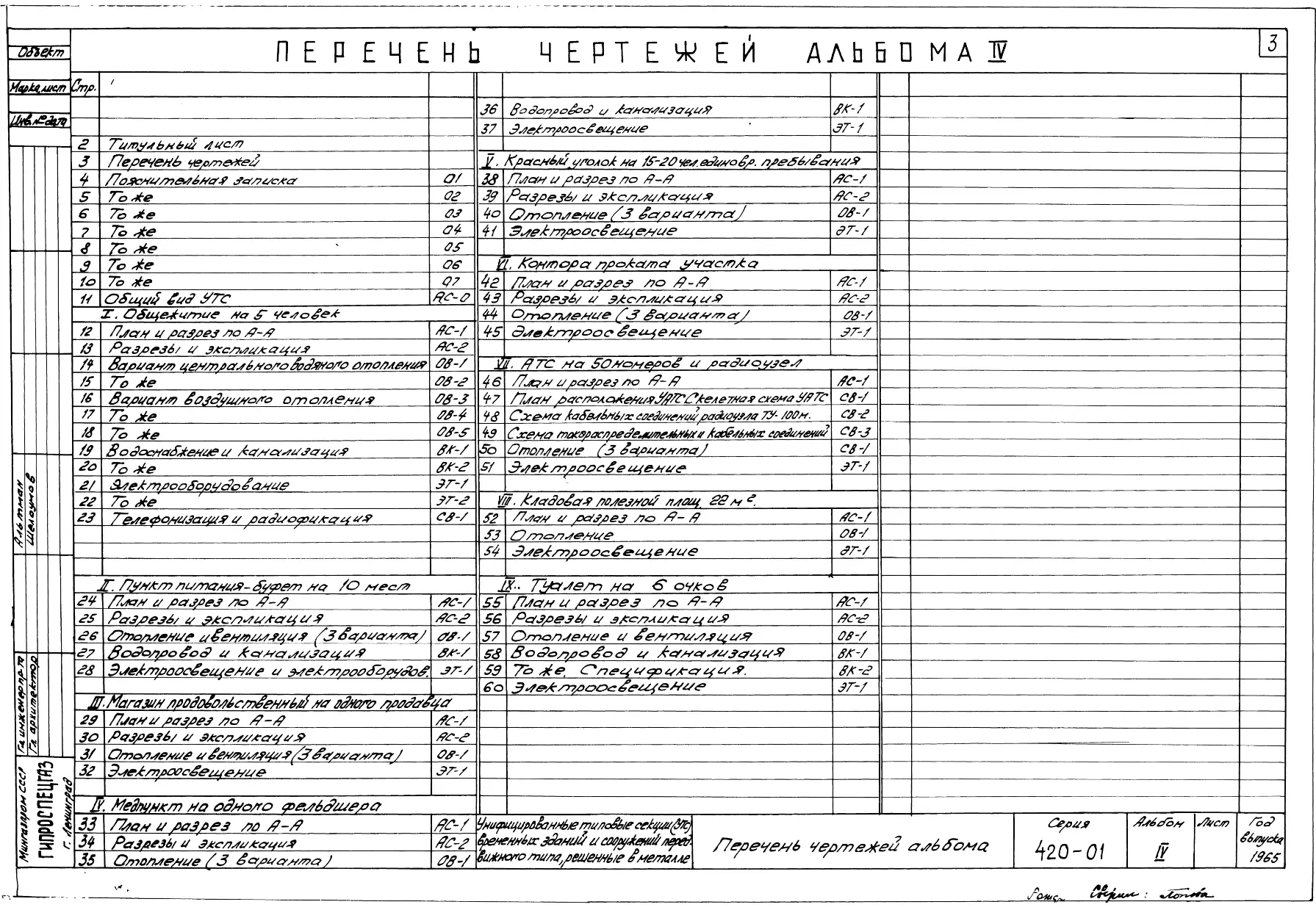 Типовой проект 420-01 Унифицированные типовые секции (УТС) временных зданий и сооружений. Здания и сооружения передвижного типа (решенные в металле) для строительных площадок и жилых полевых городков на период строительства до 6 месяцев