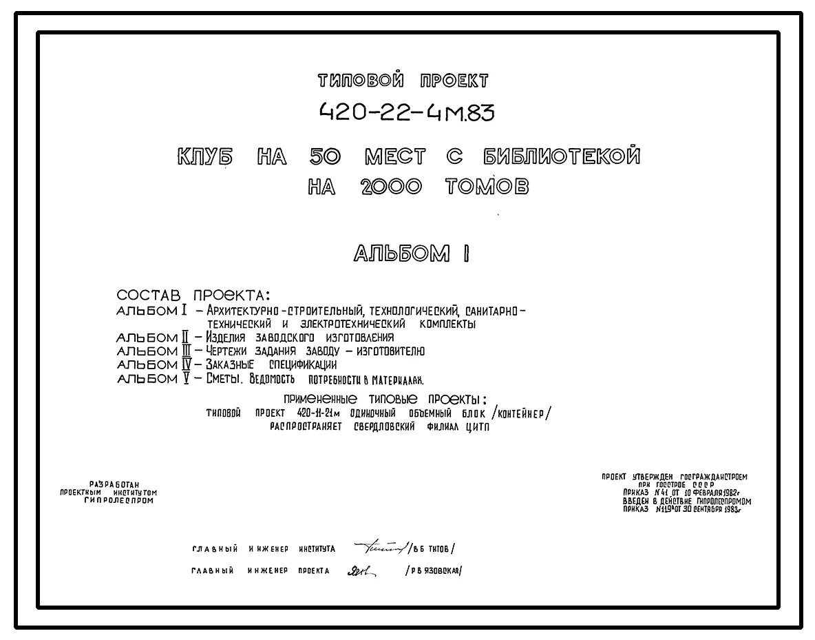 Типовой проект 420-22-4м.83 Клуб на 50 мест с библиотекой на 2000 томов. Для строительства в районе на вечномерзлых грунтах.