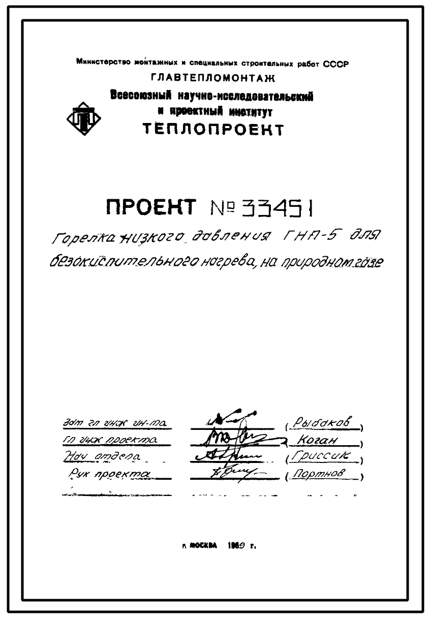 Проект 33451 Горелка газовая низкого давления ГНП-5 для безокислительного нагрева на природном газе