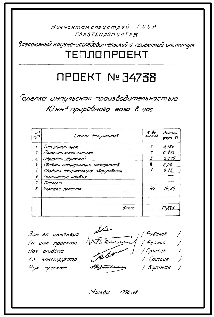 Проект 34738 Горелка импульсная производительностью 10нм куб/час