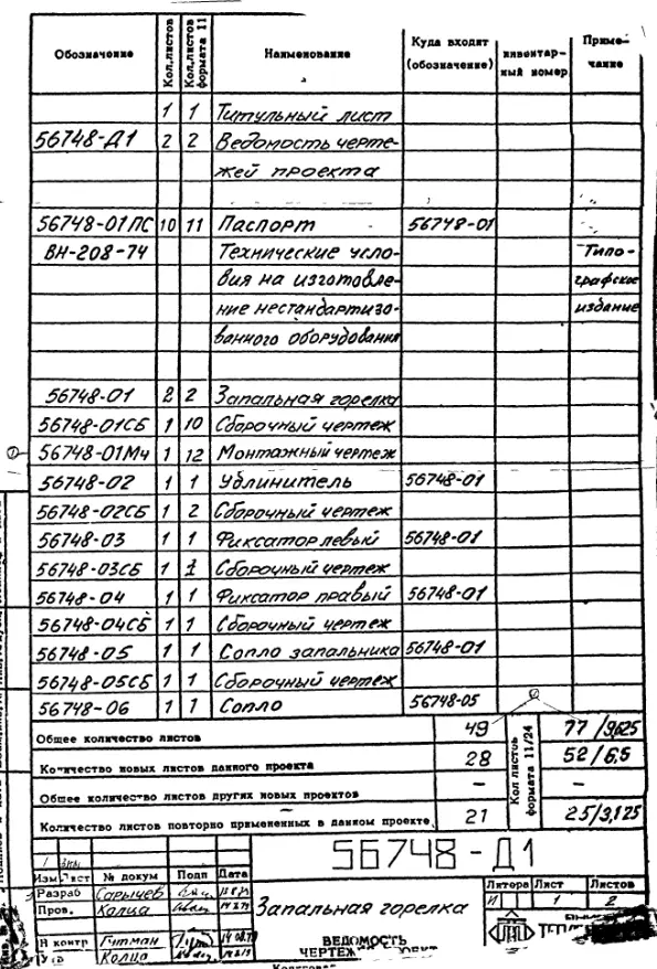Проект 56748 Запальная горелка 3Г-05-400 для зажигания плоскопламенных горелок ГПП установленных в своде печей