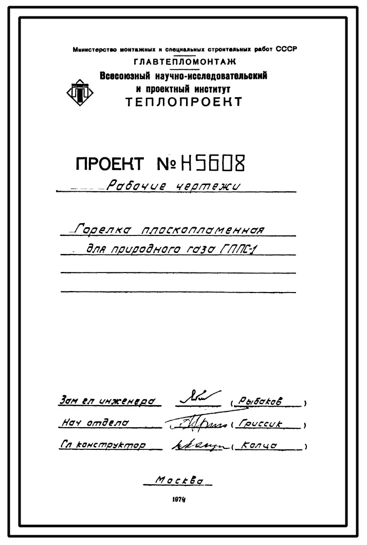 Проект Н5608 Горелка плоскопламенная ГППС-1 для природного газа