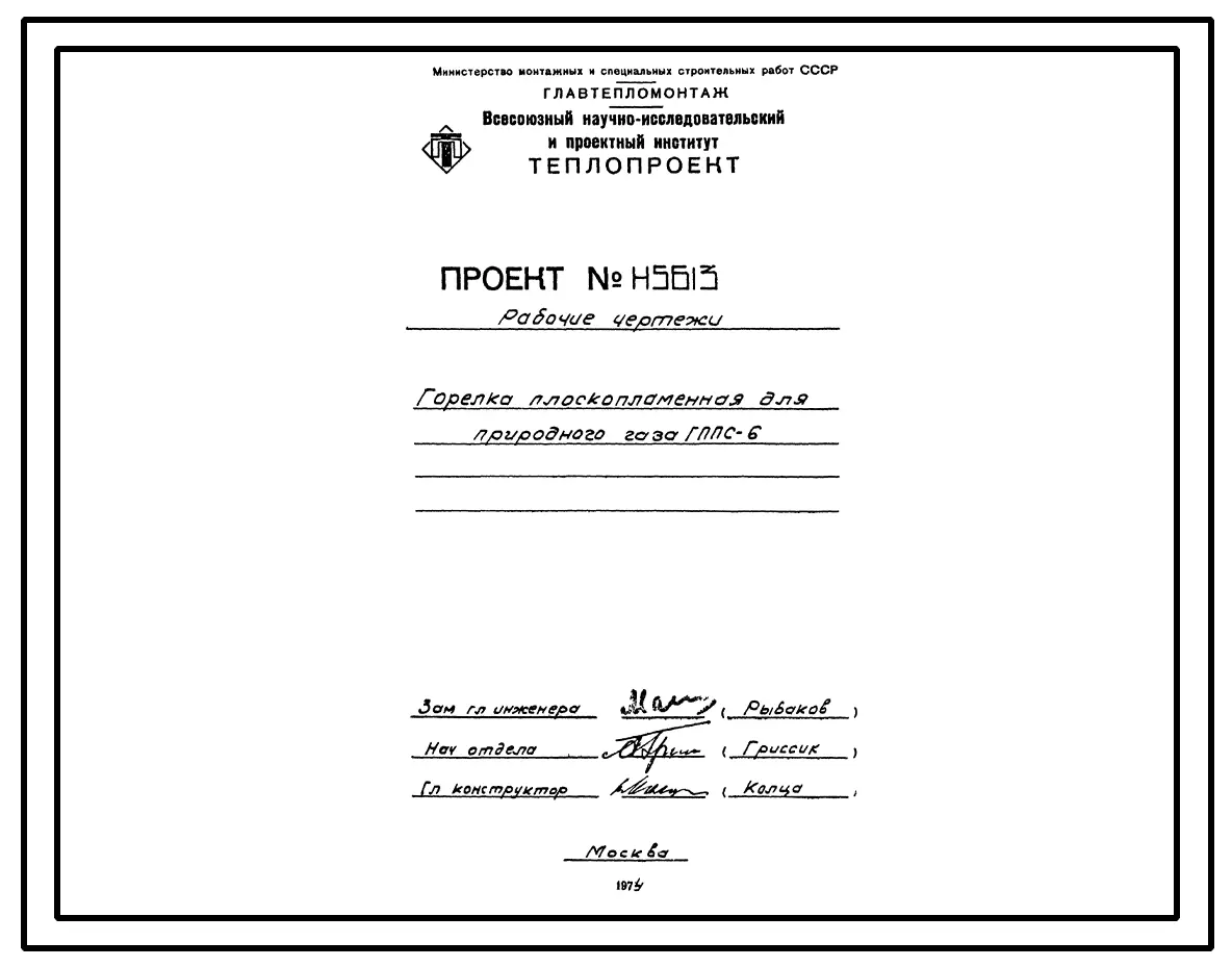 Проект Н5613 Горелка плоскопламенная ГППС-6 для природного газа