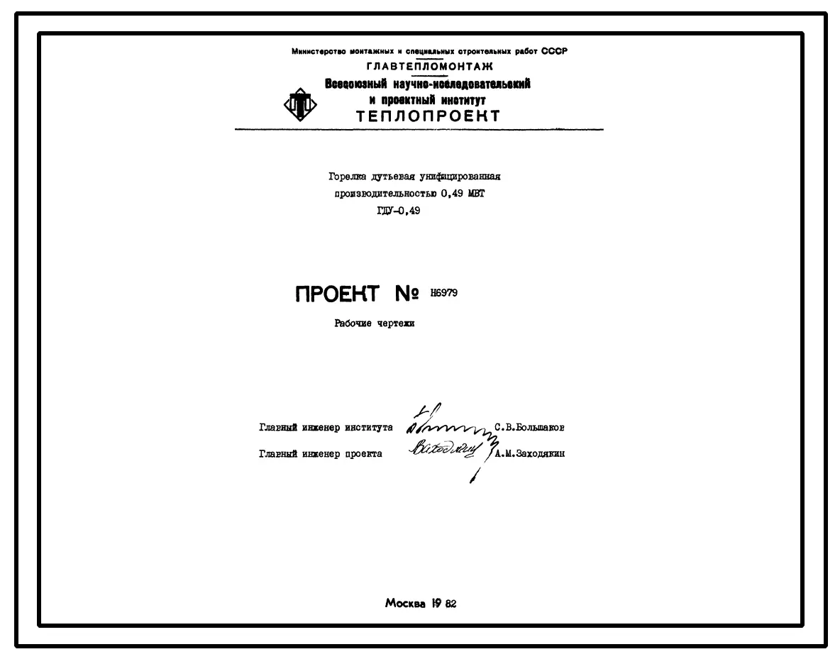 Проект Н6979 Горелка дутьевая унифицированная ГДУ-0,49 производительностью 0,49 мВт