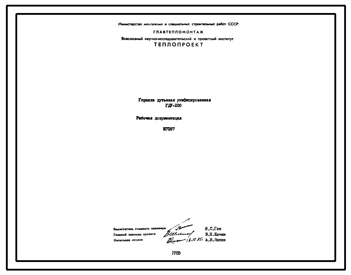 Проект Н7167 Горелка дутьевая унифицированная ГДУ-100