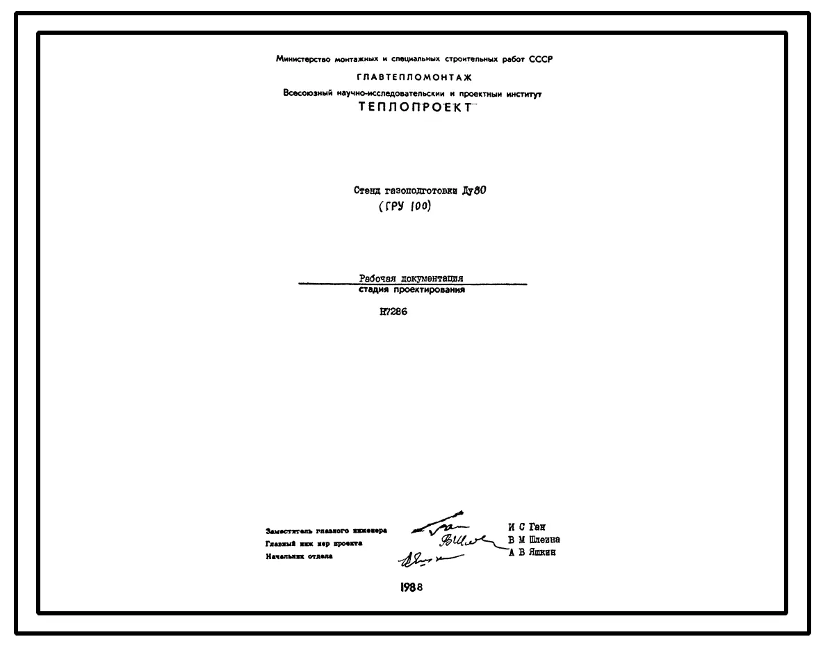 Проект Н7286 Стенд газоподготовки Ду80 (ГРУ-100)