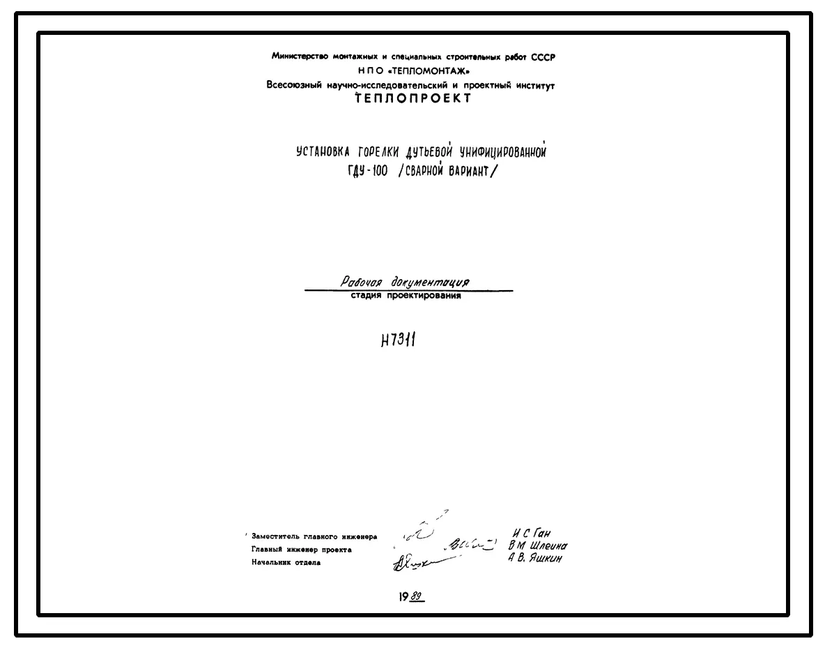 Проект Н7311 Установка горелки дутьевой унифицированной ГДУ-100 (сварной вариант)