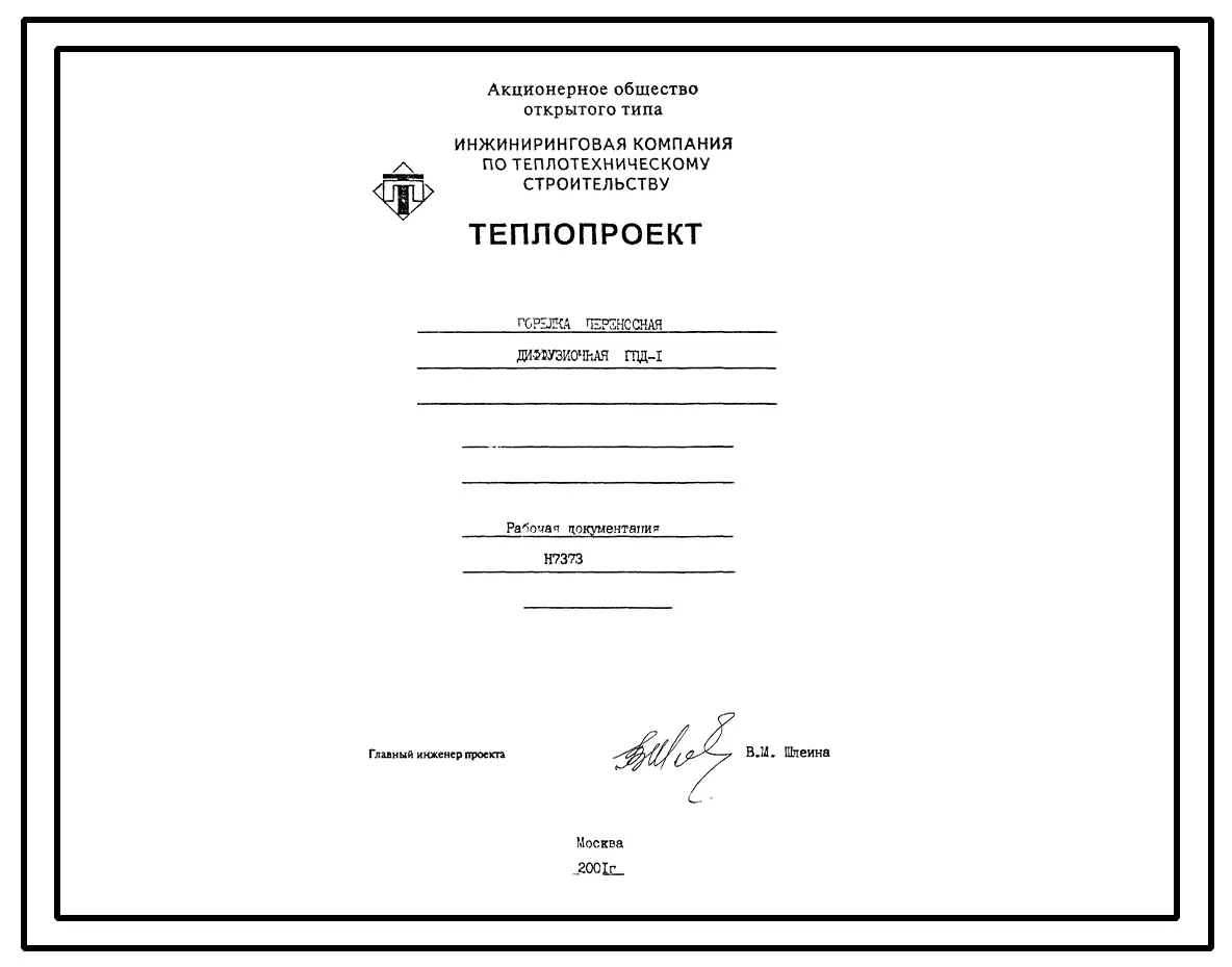 Проект Н7373 Горелка переносная диффузионная ГПД-1
