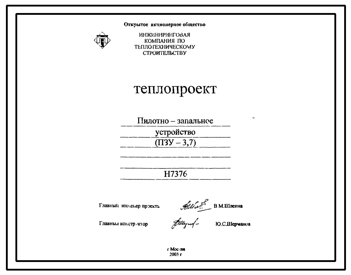 Проект Н7376 Пилотно-запальное устройство (ПЗУ-3,7) для горелок ГТПЦ