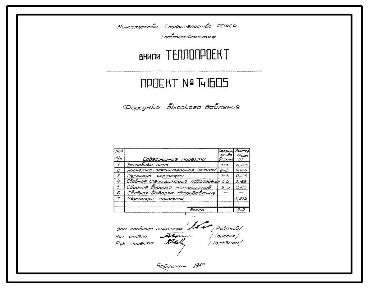 Проект Тч1605 Форсунка высокого давления для сжигания мазута в количестве от 3 до 240 кг/час