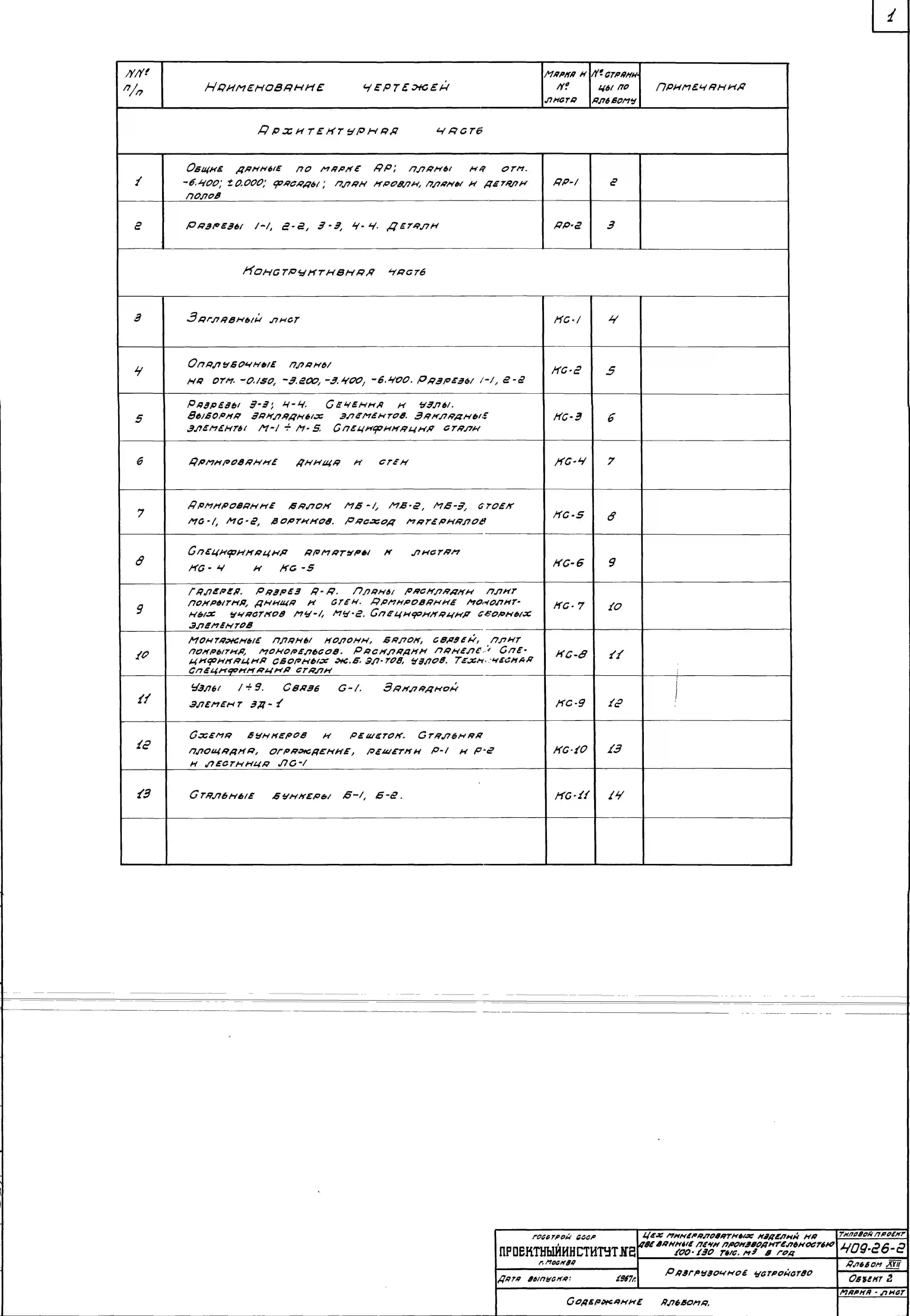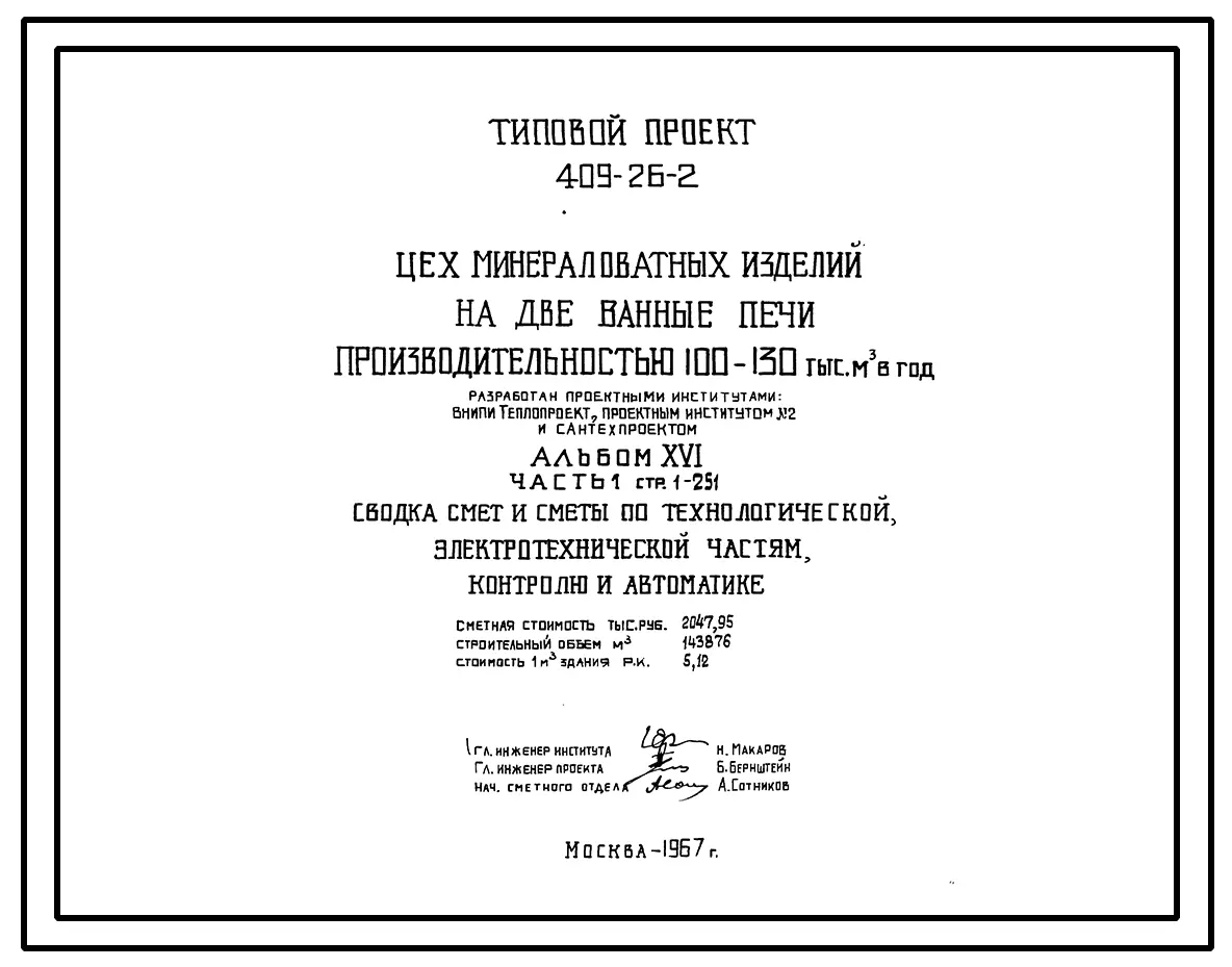 Типовой проект 409-26-2 Цех минераловатных изделий на две ванные печи производительностью 100-130 тыс.м? в год.