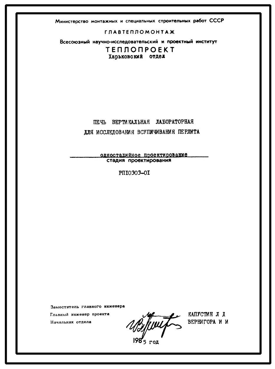 Проект 10303 Печь вертикальная лабораторная для исследования вспучивания перлита