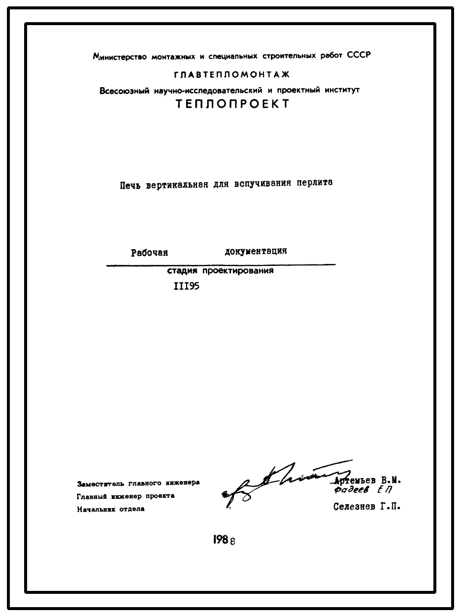Проект 11195 Печь вертикальная для вспучивания перлита