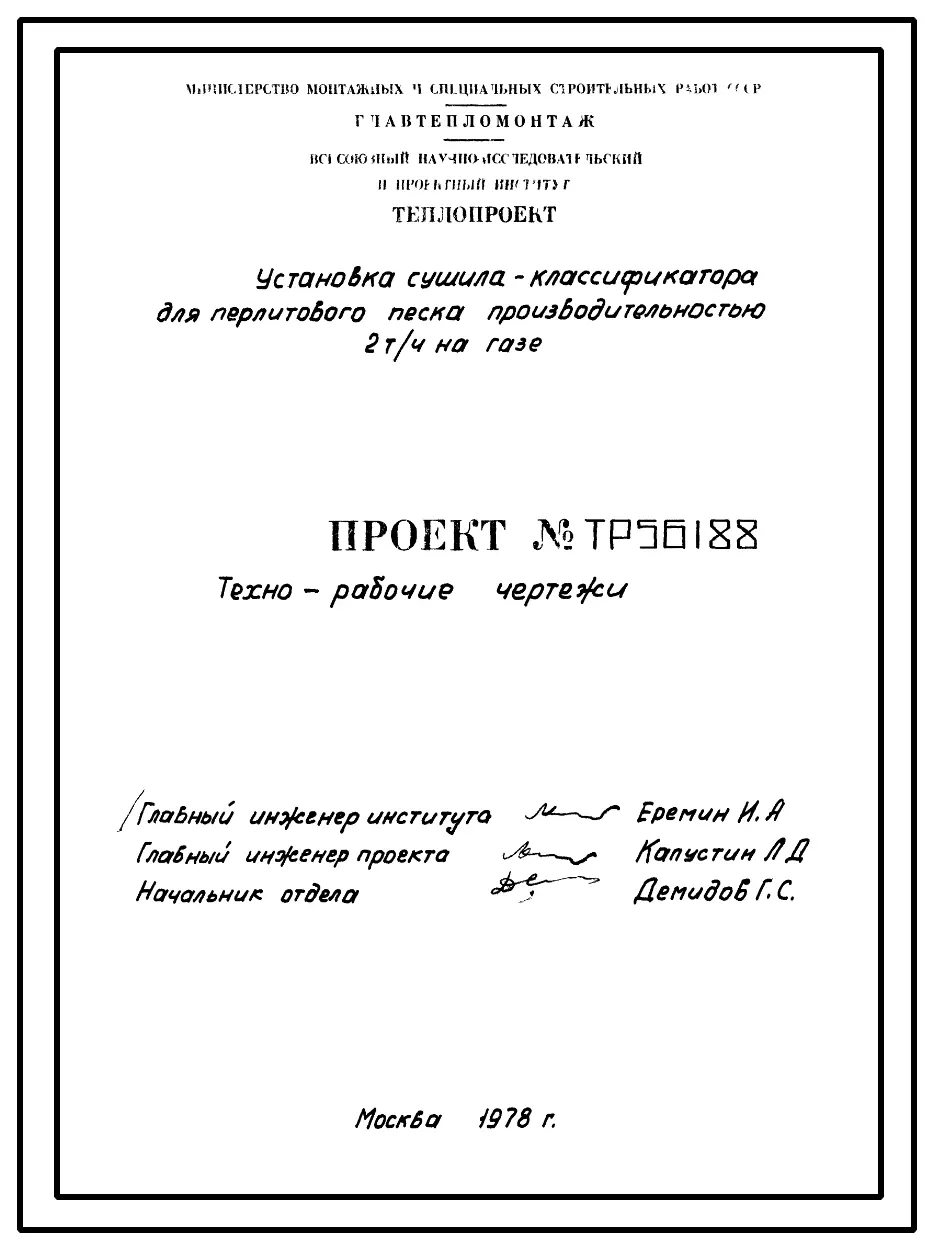 Проект 56188 Сушило-классификатор для перлитового песка производительностью 2т/час на газе