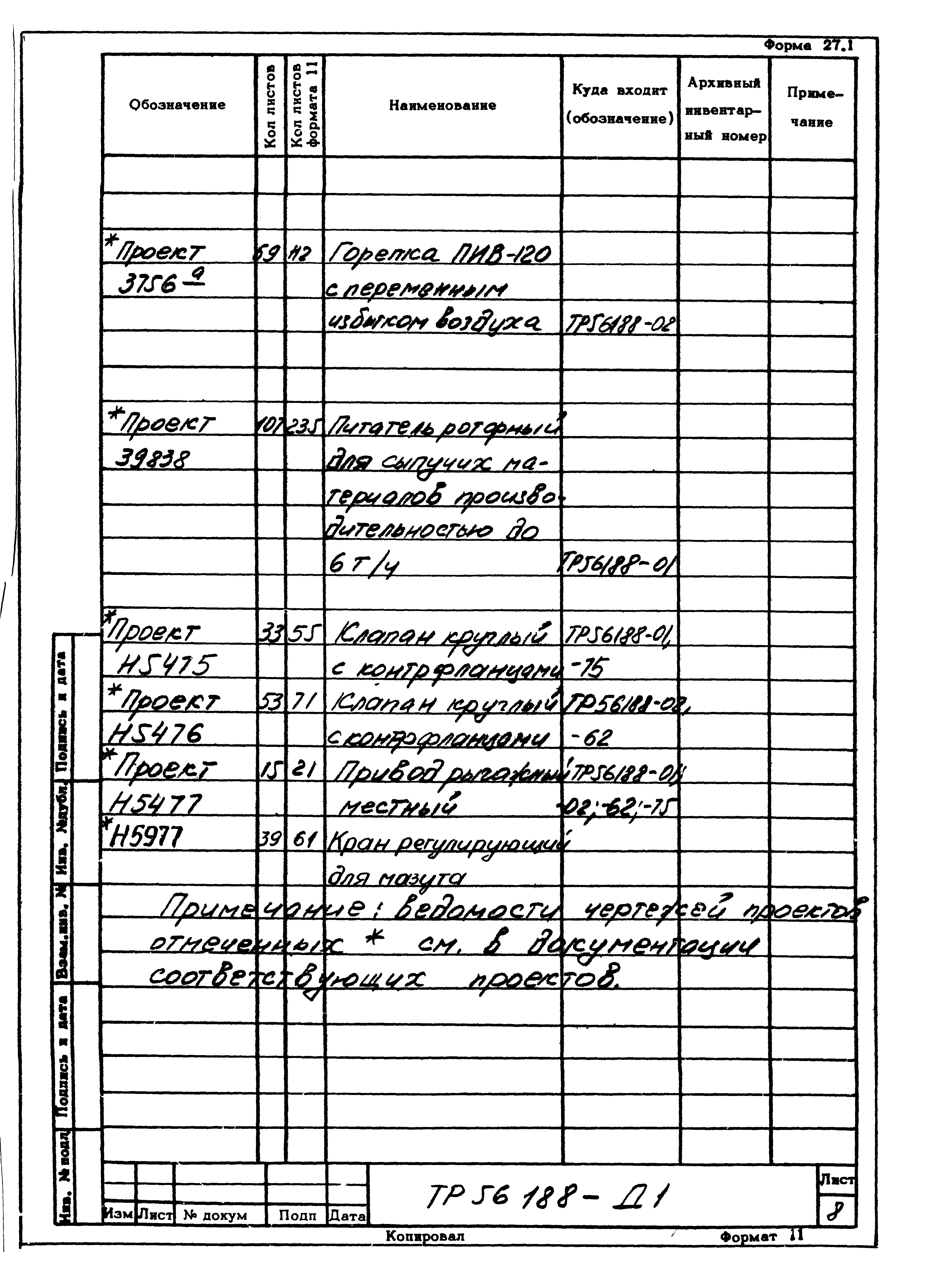 В нашем архиве более 27 тысяч проектов с документацией и более 120 тысяч паспортов проектов без типовых проектов. Паспорт проекта -это краткое описание типового проекта . Паспорт проекта всегда разрабатывался вместе с проектом и являлся кратким его описанием. Обычно объем паспорта- 1-3 листа, но в каждом конкретном случае размер и содержание паспорта определял разработчик проекта.