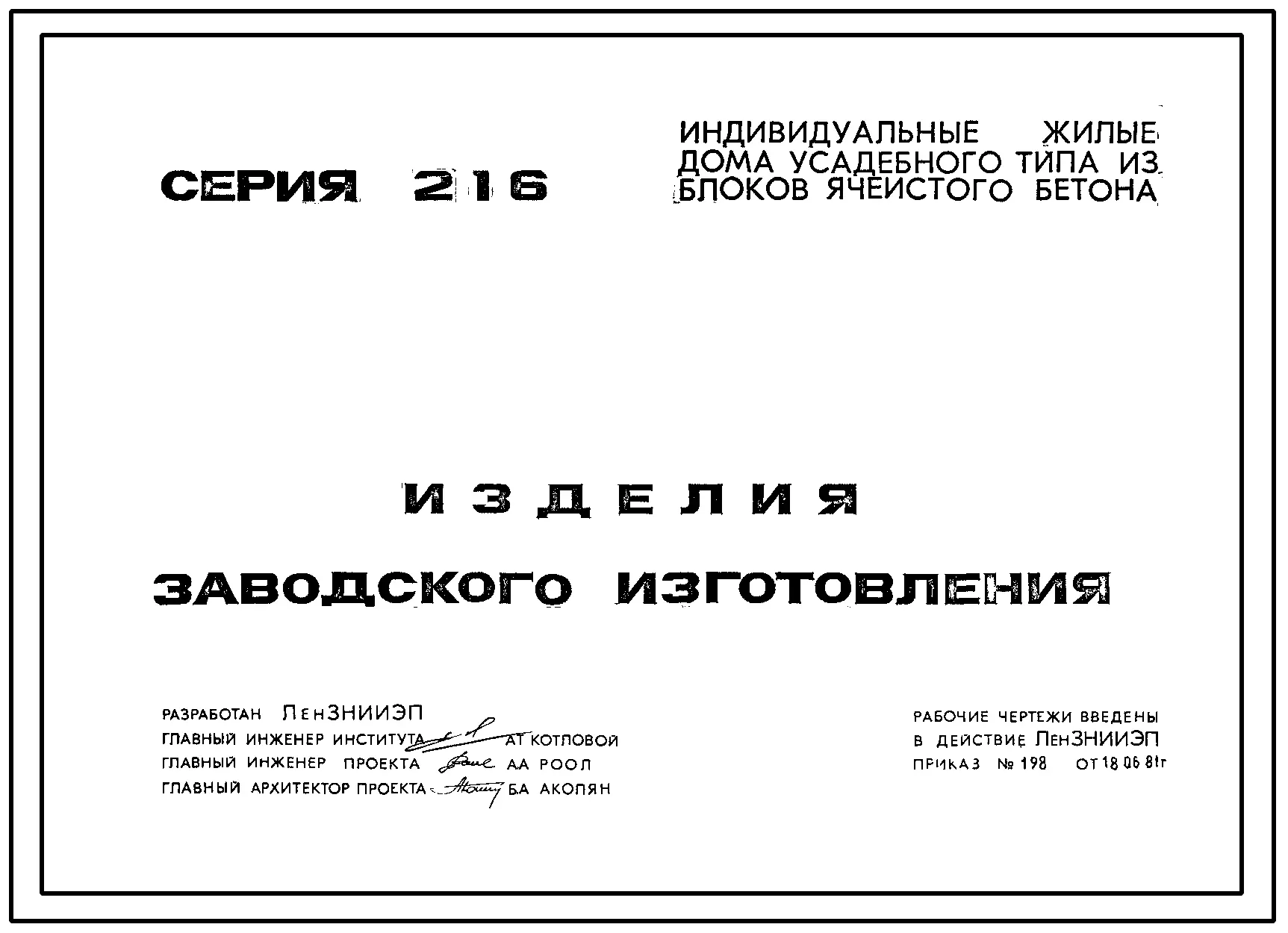 Серия 216 Индивидуальные жилые дома усадебного типа из блоков ячеистого бетона Изделия к серии 216