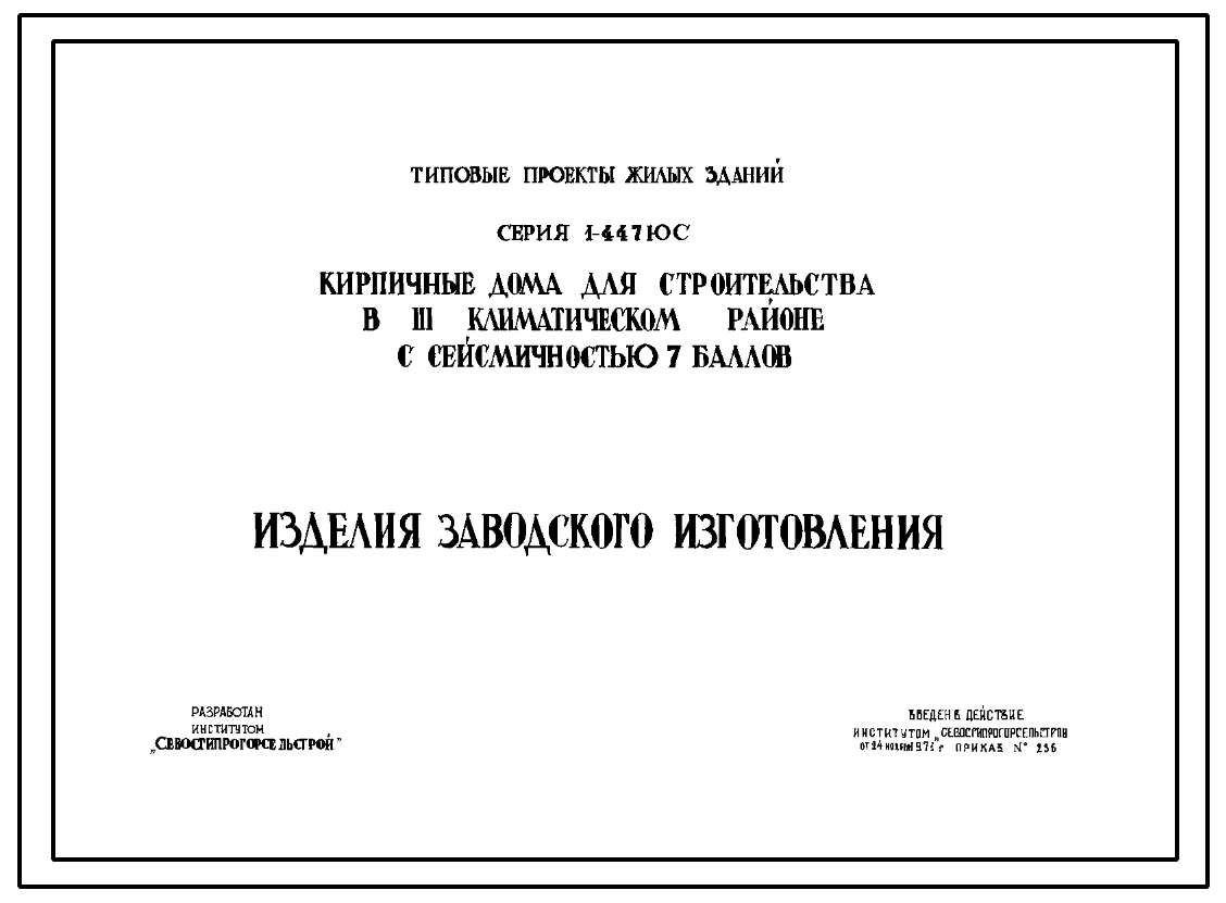 Серия 1-447ЮС Кирпичные дома для строительства в 3 климатическом районе с сейсмичностью 7 баллов Изделия к серии 1-447ЮС
