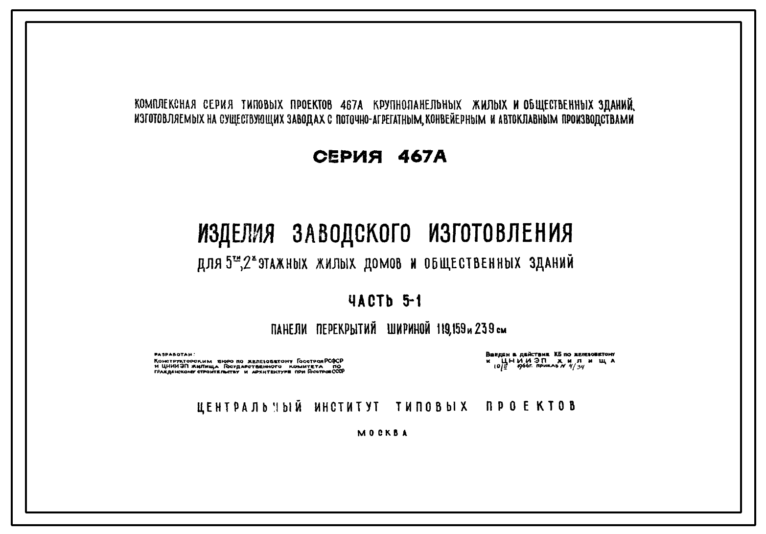 Серия 467А Комплексная серия крупнопанельных жилых и общественных зданий. Изделия к серии