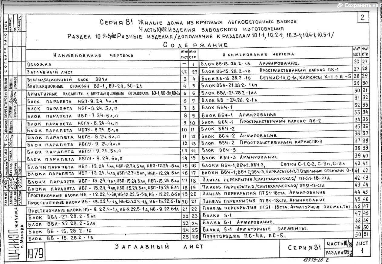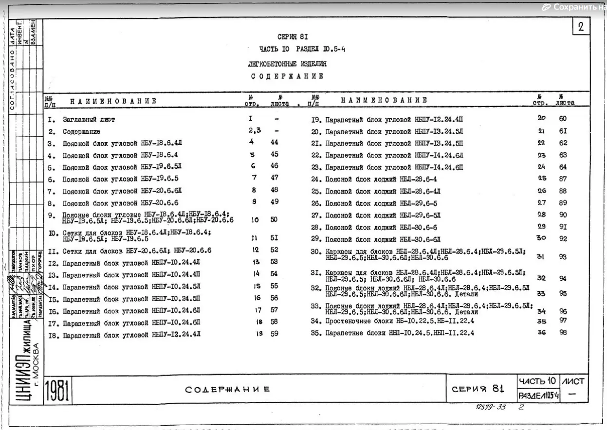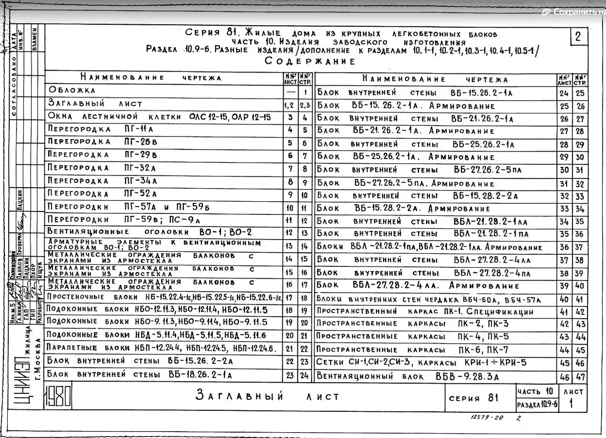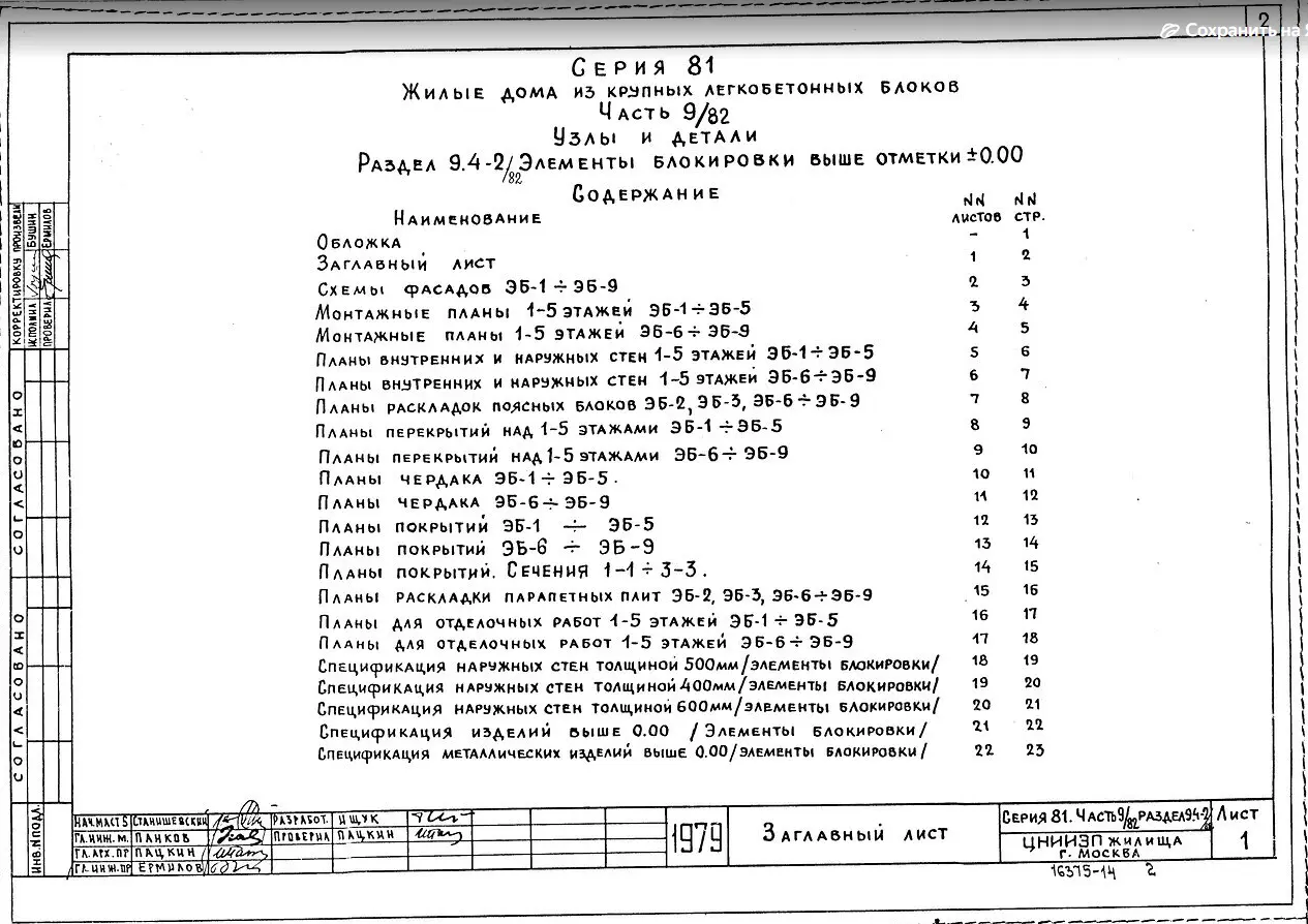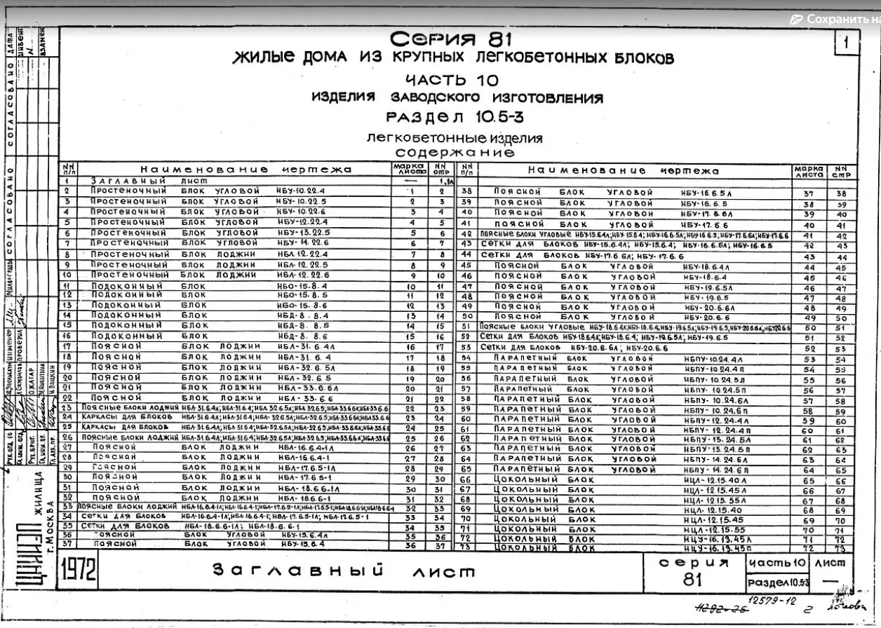Серия 81 Жилые дома из крупных легкобетонных блоков. Улы и детали. Изделия к серии 81
