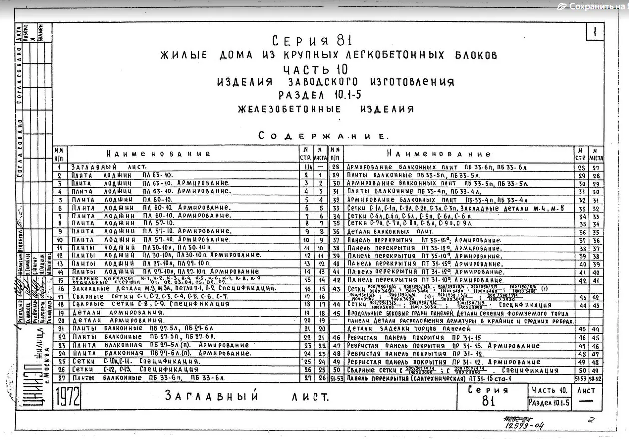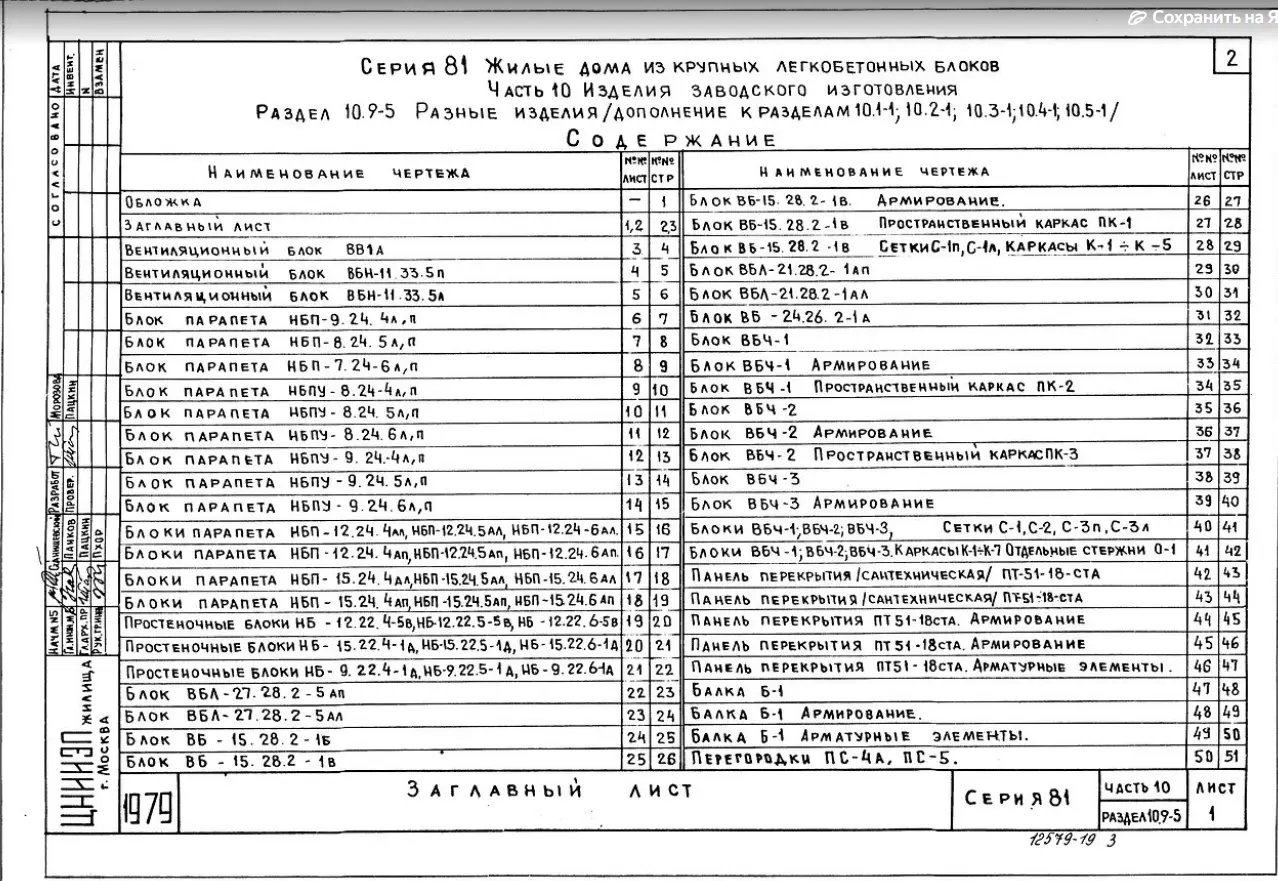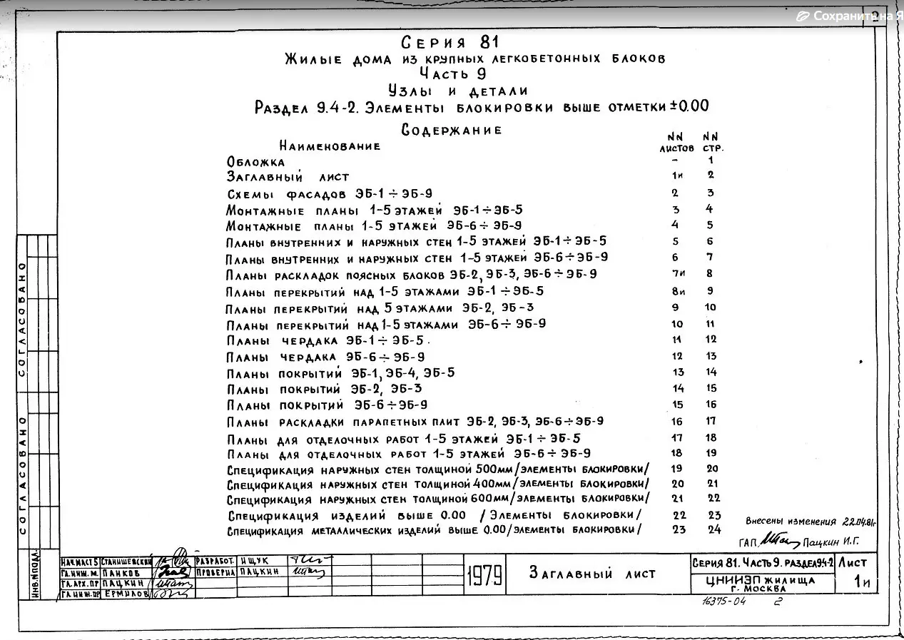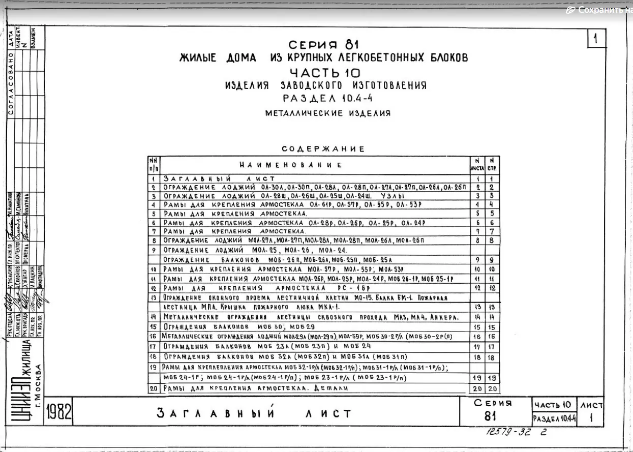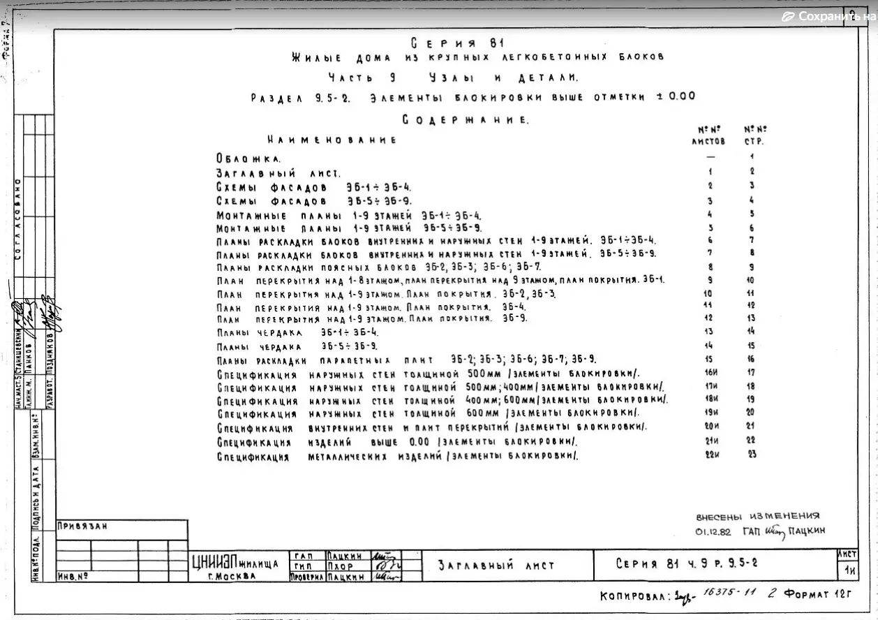 Серия 81 Жилые дома из крупных легкобетонных блоков. Улы и детали. Изделия к серии 81