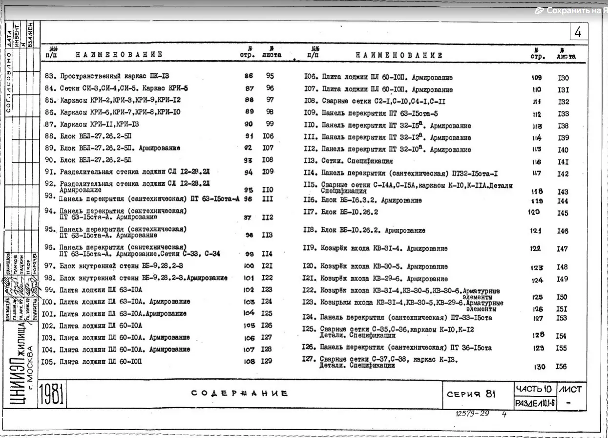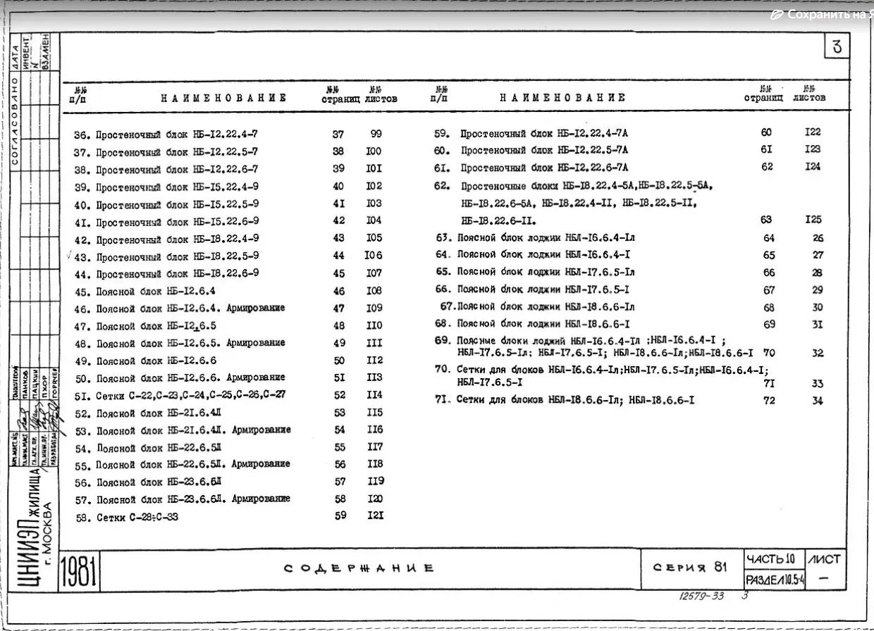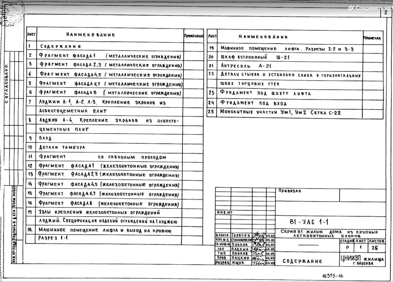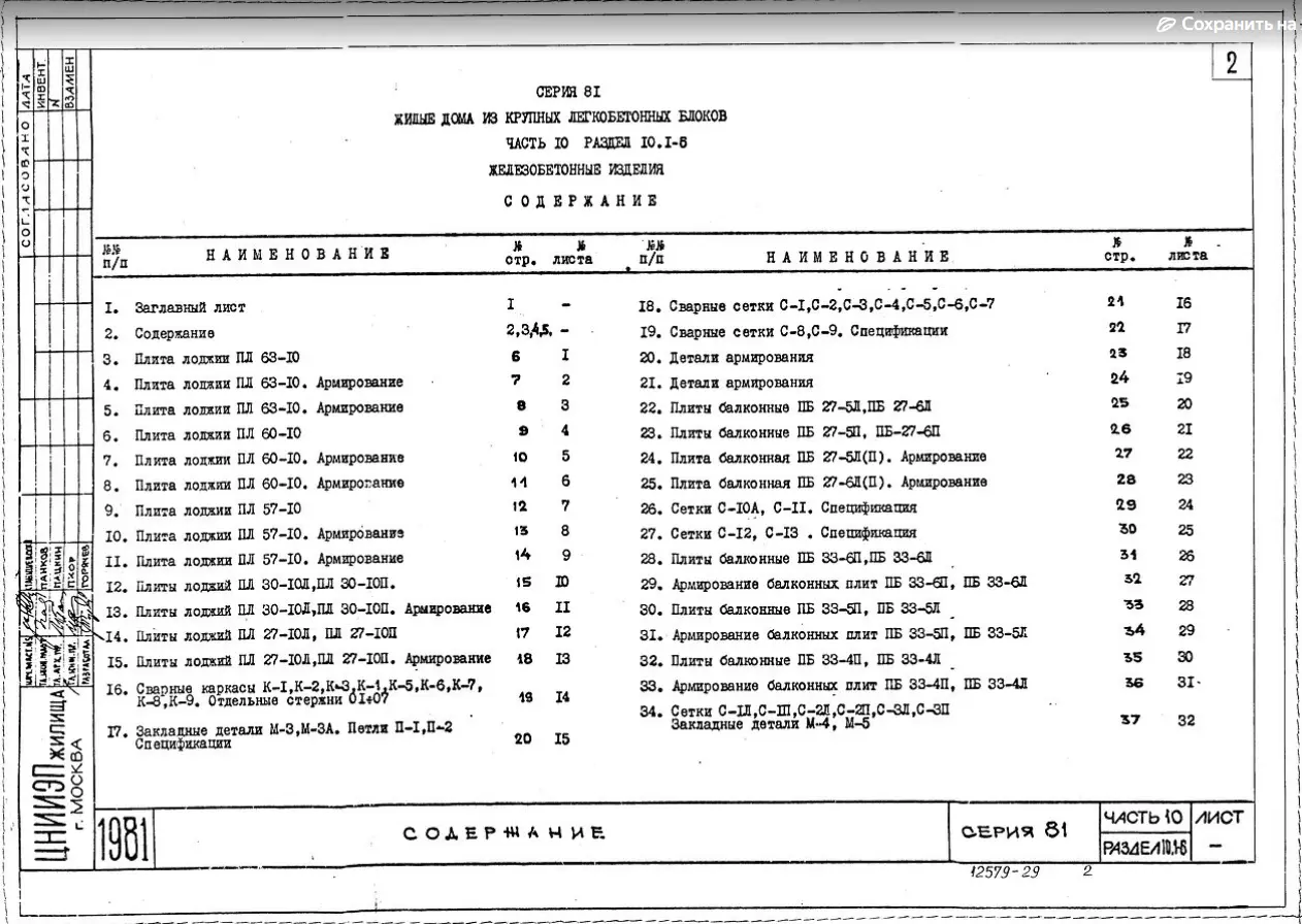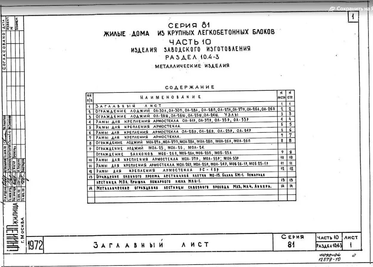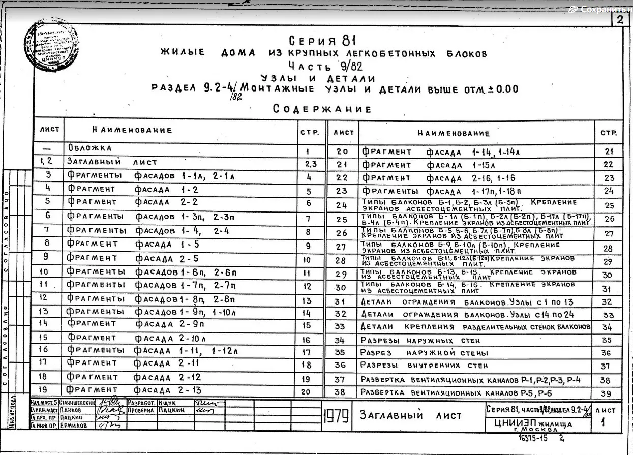 Серия 81 Жилые дома из крупных легкобетонных блоков. Улы и детали. Изделия к серии 81