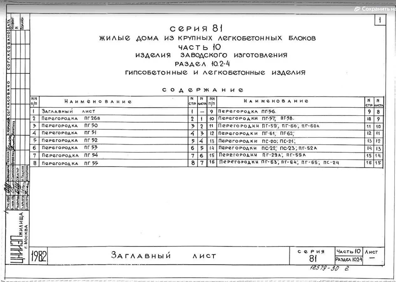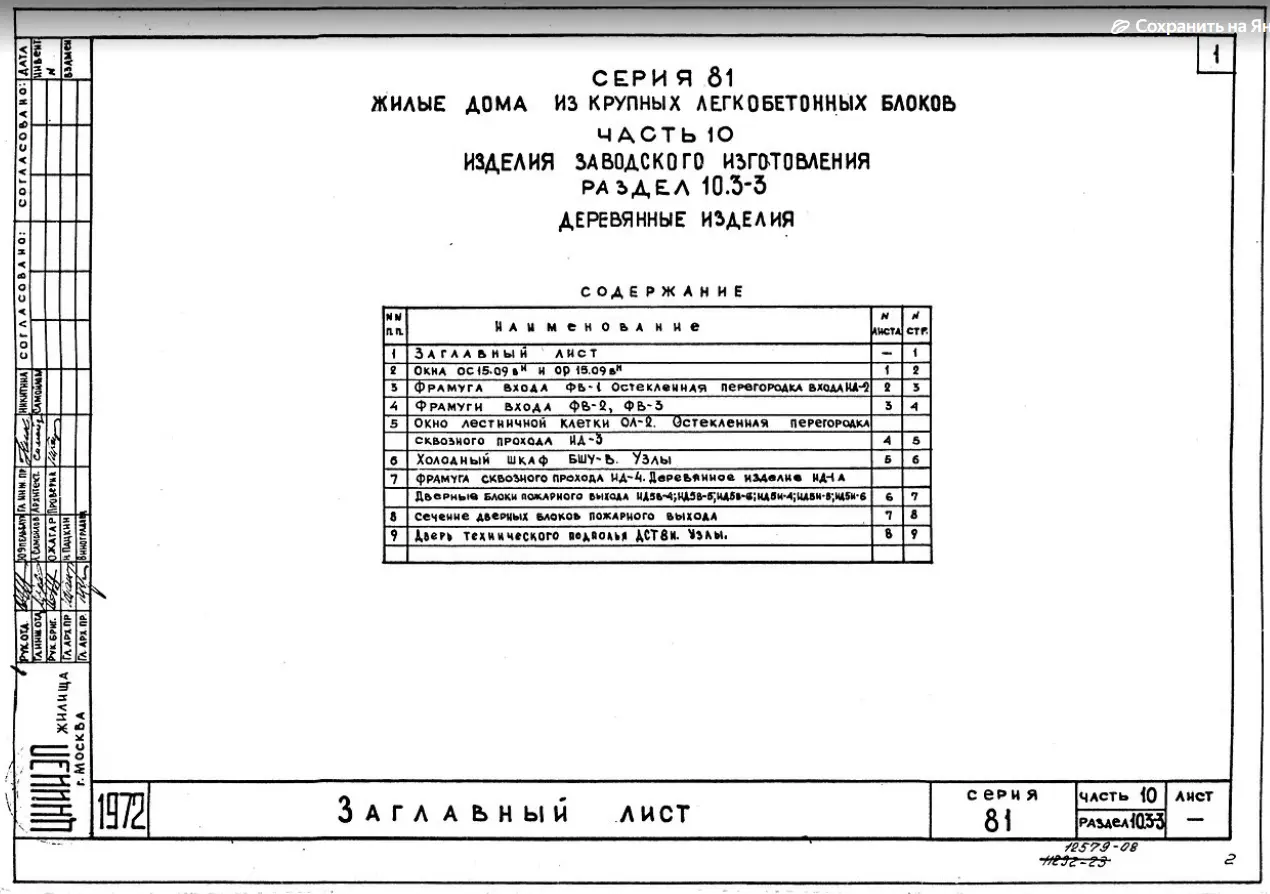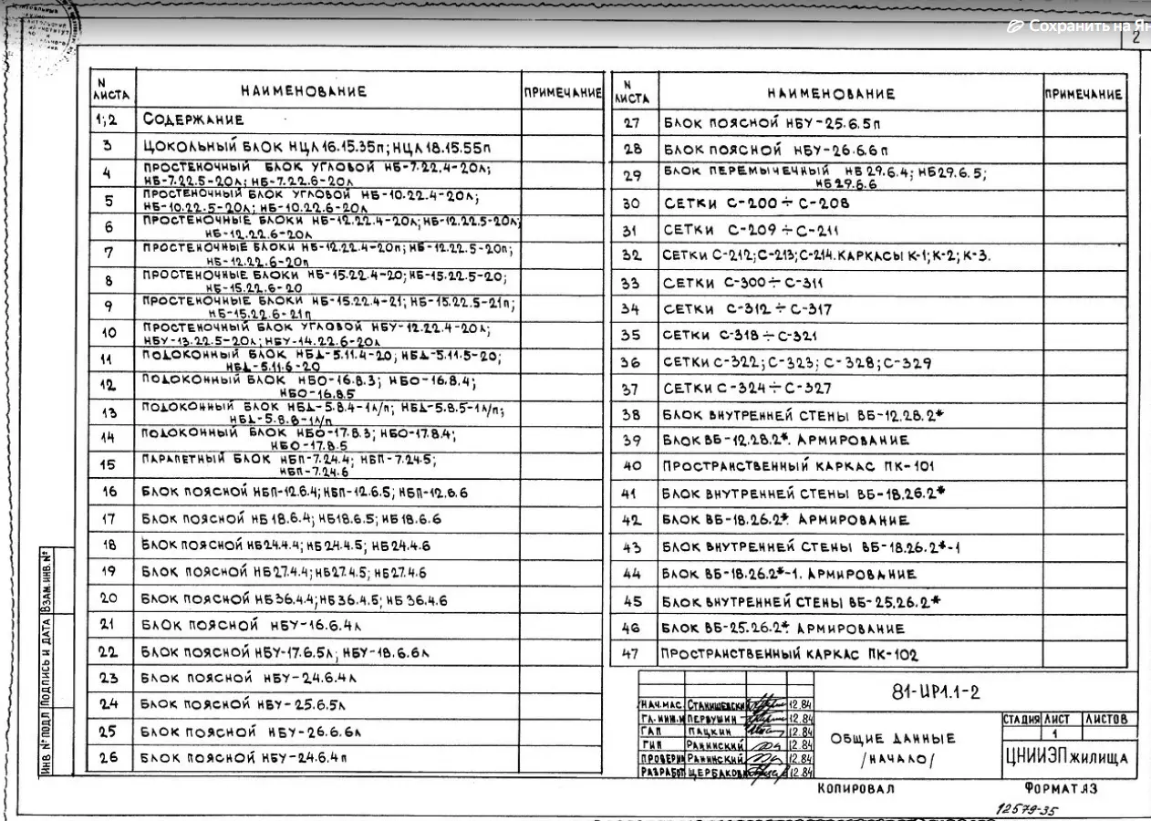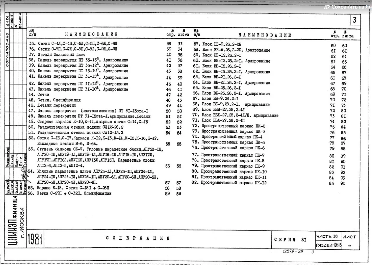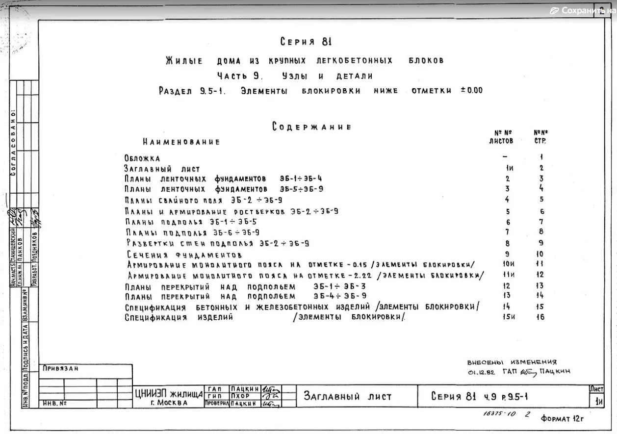 Серия 81 Жилые дома из крупных легкобетонных блоков. Улы и детали. Изделия к серии 81