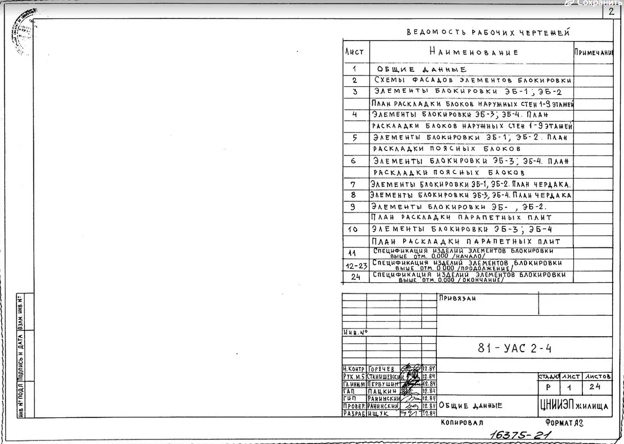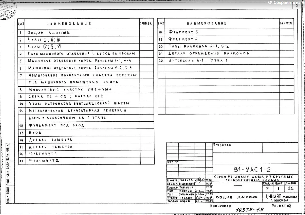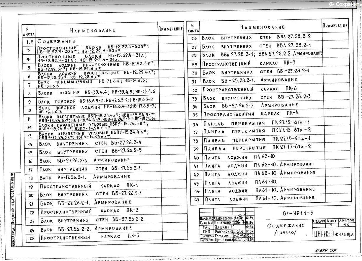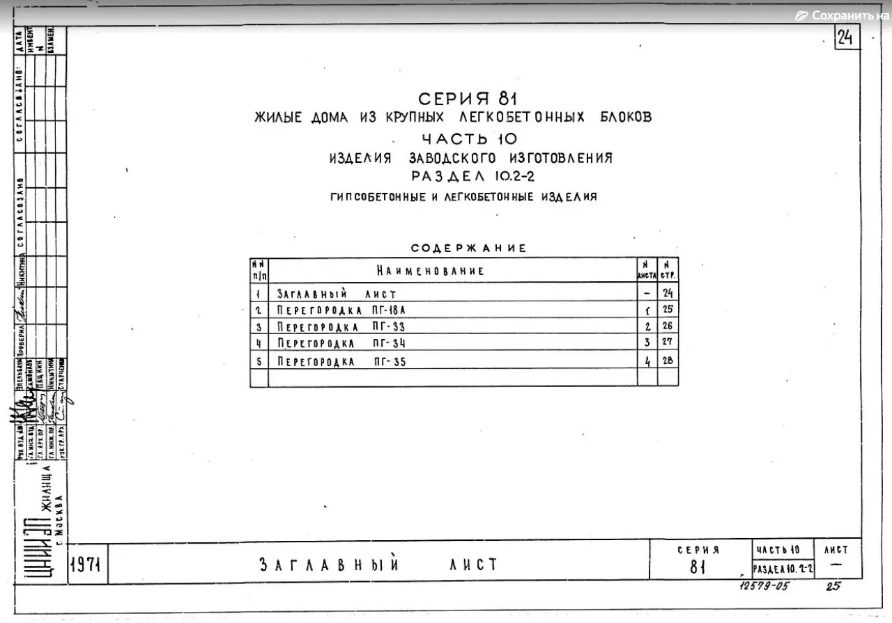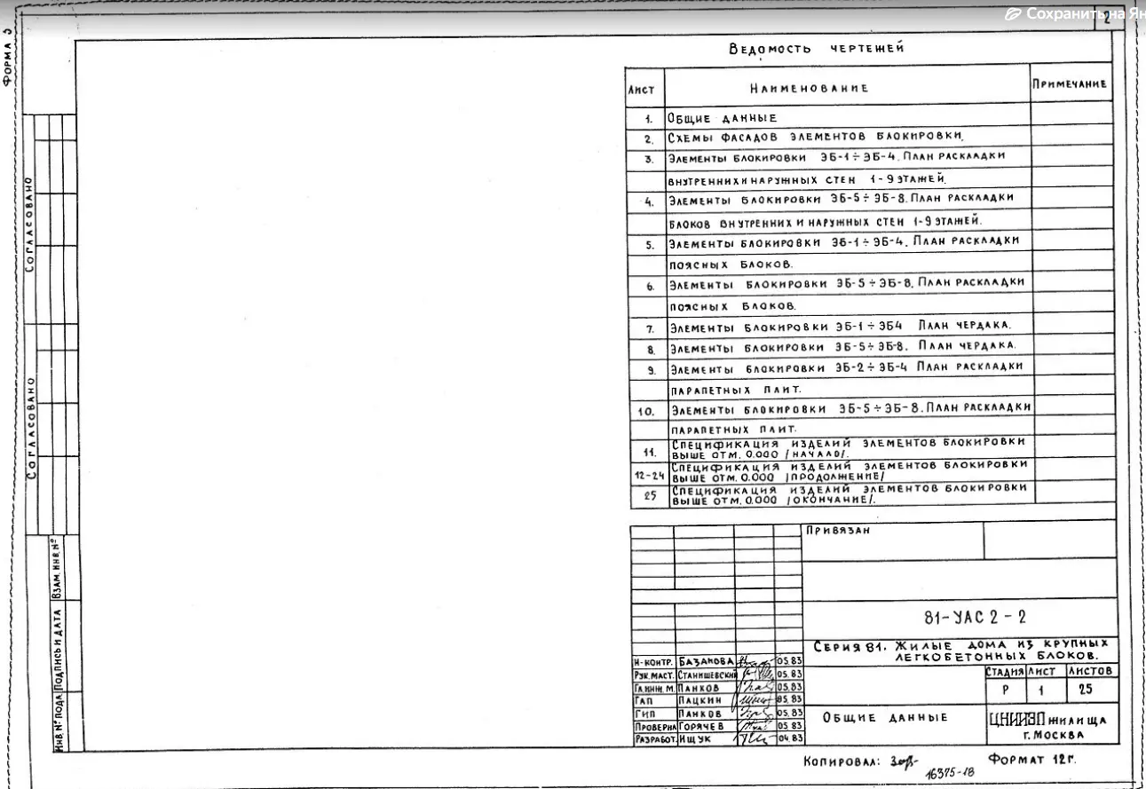 Серия 81 Жилые дома из крупных легкобетонных блоков. Улы и детали. Изделия к серии 81