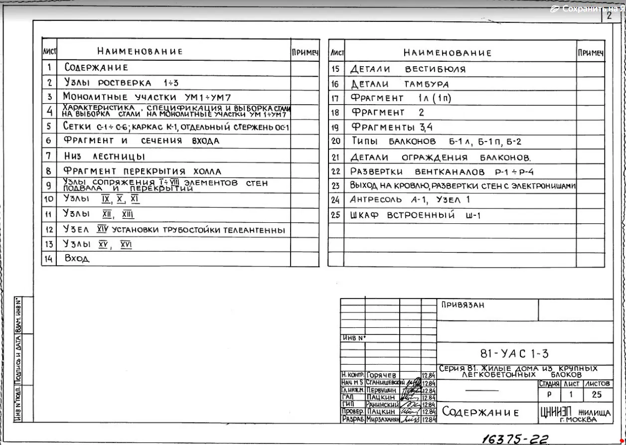 - наличия/отсутствия в конкретном проекте (при наличии чертежей, а не только паспорта проекта) нужных разделов
