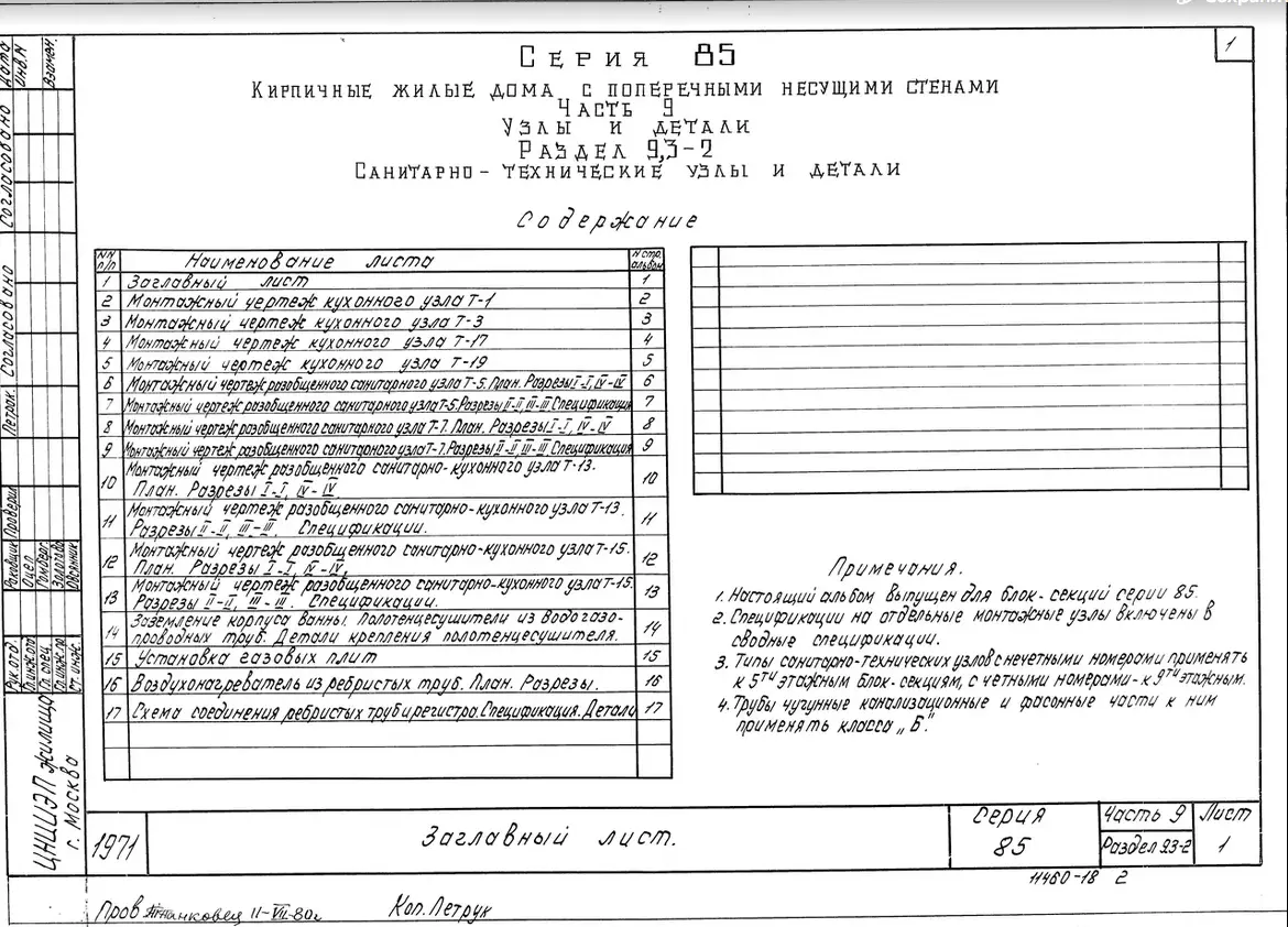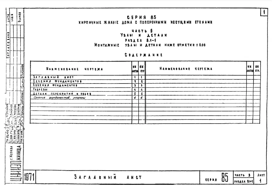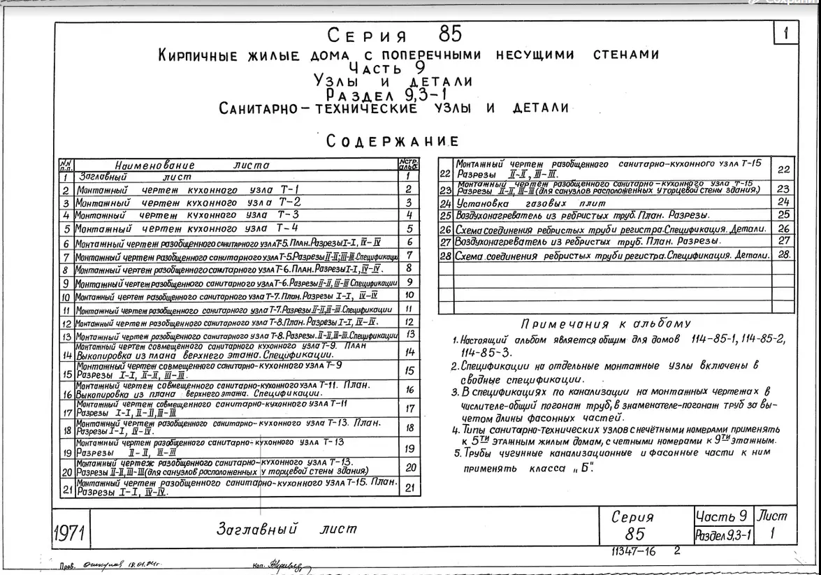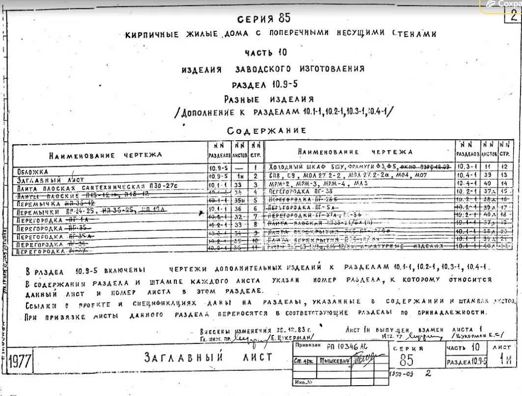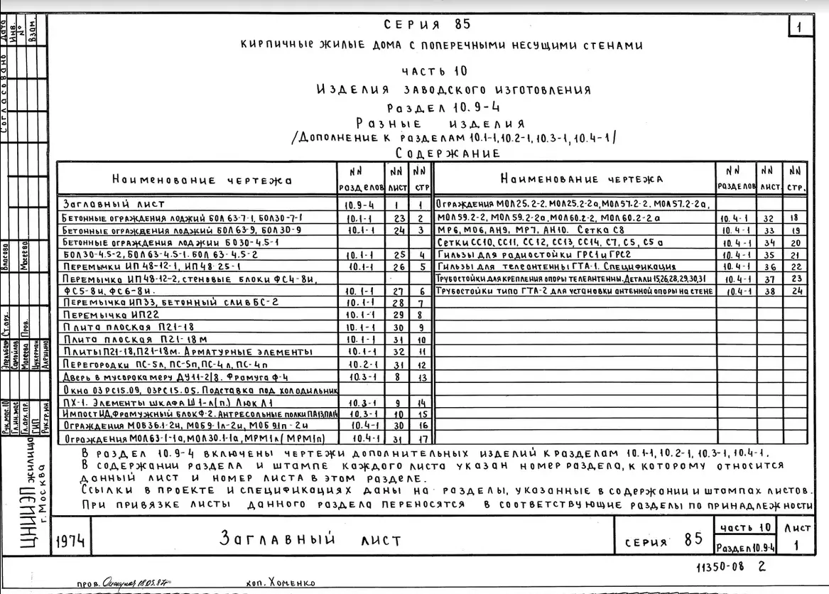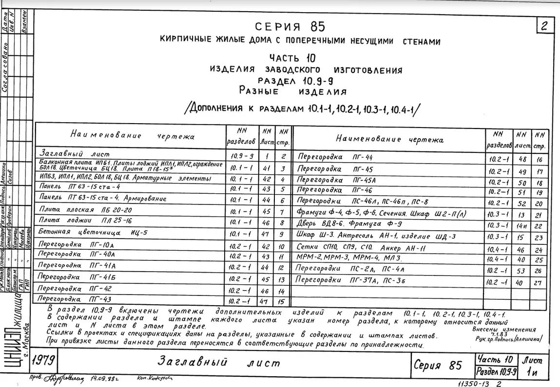 Серия 85 Кирпичные жилые дома и блок-секции с поперечными несущими стенами. Изделия к серии 85